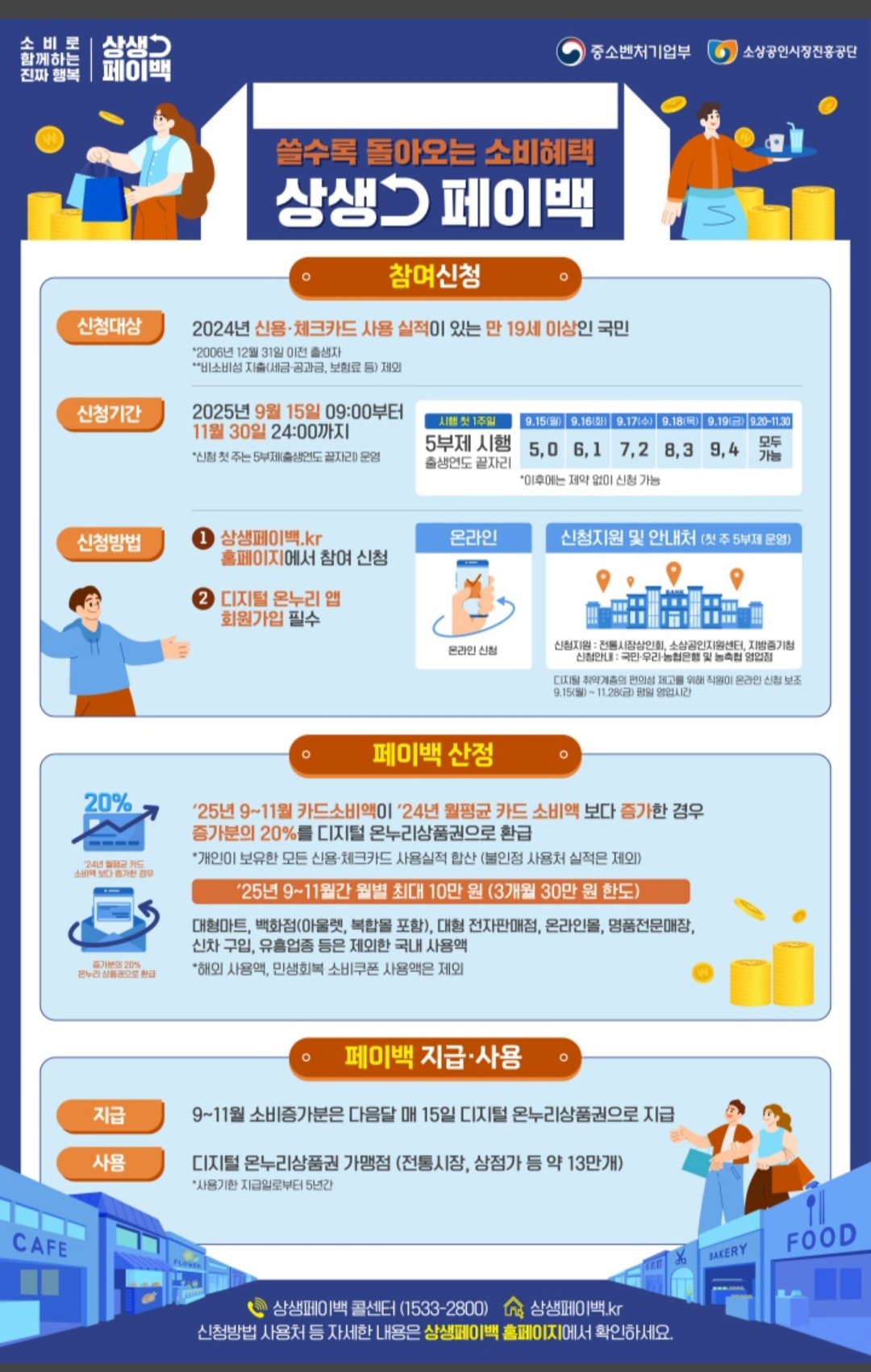 문의: 중소벤처기업부 민생지원TF(044-204-7881, 7896, 7905), 소상공인시장진흥공단 상생페이백 기획운영팀(042-363-7651)