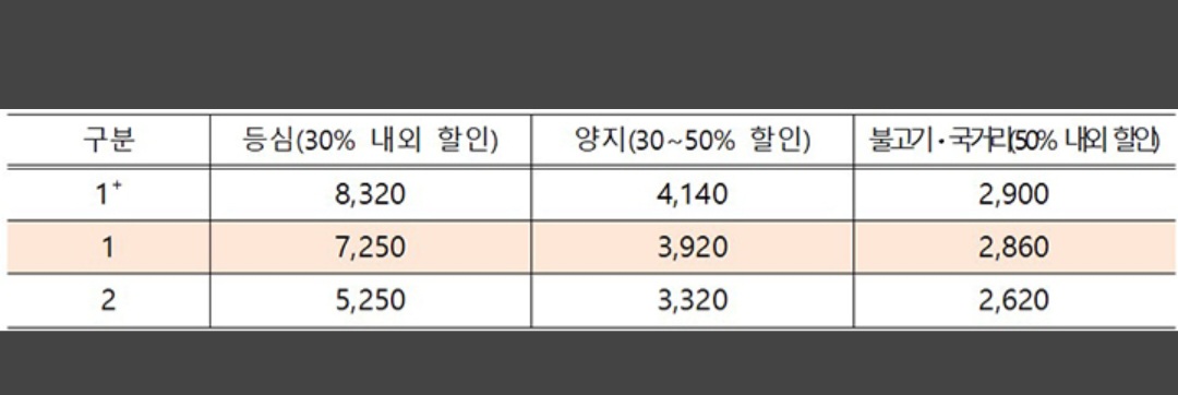 '1+' 등급에서 '2' 등급까지 다양하게 구성돼 있으며, 매장별 할인행사 일정과 할인 품목 등은 한우자조금과 전국한우협회 누리집에서 확인할 수 있다.