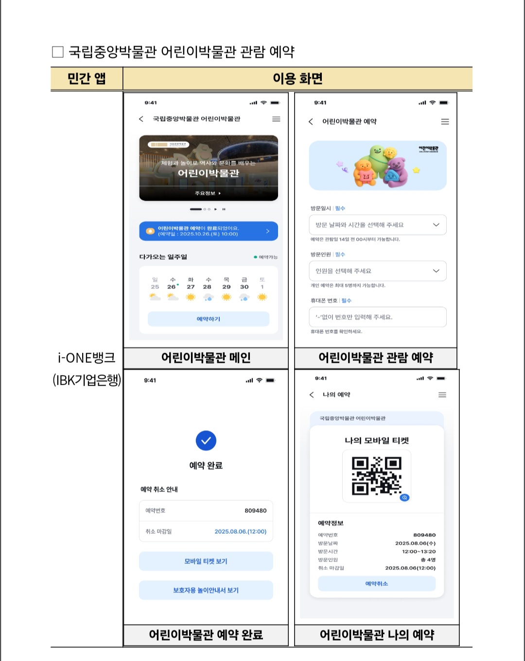 29일부터는 국립중앙박물관의 어린이박물관 관람 예약은 IBK기업은행의 'i-ONE뱅크'에서도 할 수 있다.