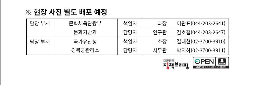 최휘영 장관은 “서울 사대문 안, 특히 경복궁은 주변에 여러 문화시설이 밀집해 있는 만큼, 기관 간 상호 연계와 특성화 프로그램으로 개성을 살리는 것이 중요하다.”라며 “문체부는 한국문화 열기가 계속 이어질 수 있도록 정책적 역량을 집중하겠다.”라고 밝혔다.