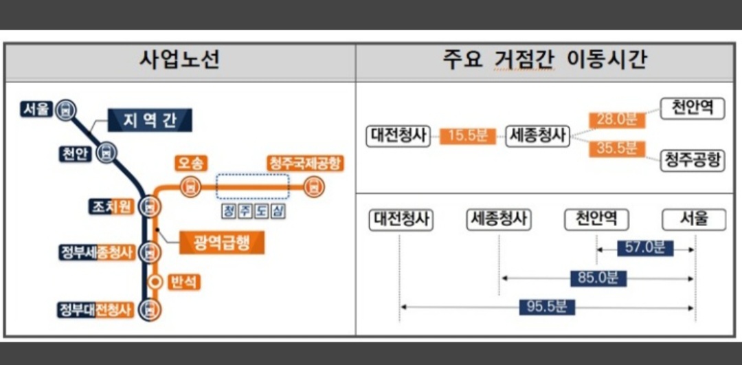 충청권 CTX는 기존 경부선을 활용해 정부대전청사~정부세종청사~서울을 바로 연결하는 지역 간 열차 운행도 함께 계획돼 있다.