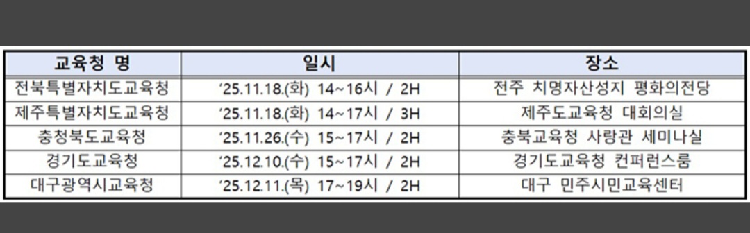 이에 대구·경기·충북·전북·제주 등 전국 5개 시·도교육청에서 진행하는 바, 먼저 18일 전북과 제주에서 시작해 충북·경기·대구 순으로 이어질 예정이다.