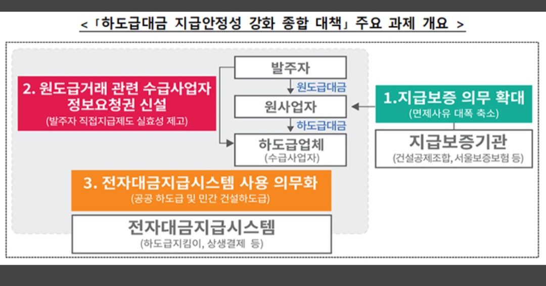 하도급 대금을 '제때 제값'을 받을 수 있도록 지급보증 의무 강화, 정보요청권 신설, 전자대금지급시스템 의무화 등이 추진된다.