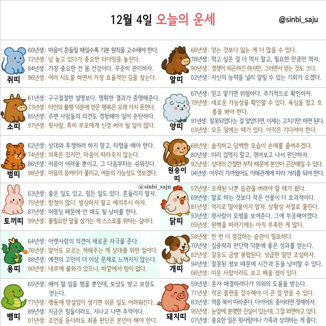 #12월4일 더사주 별자리 일일운세