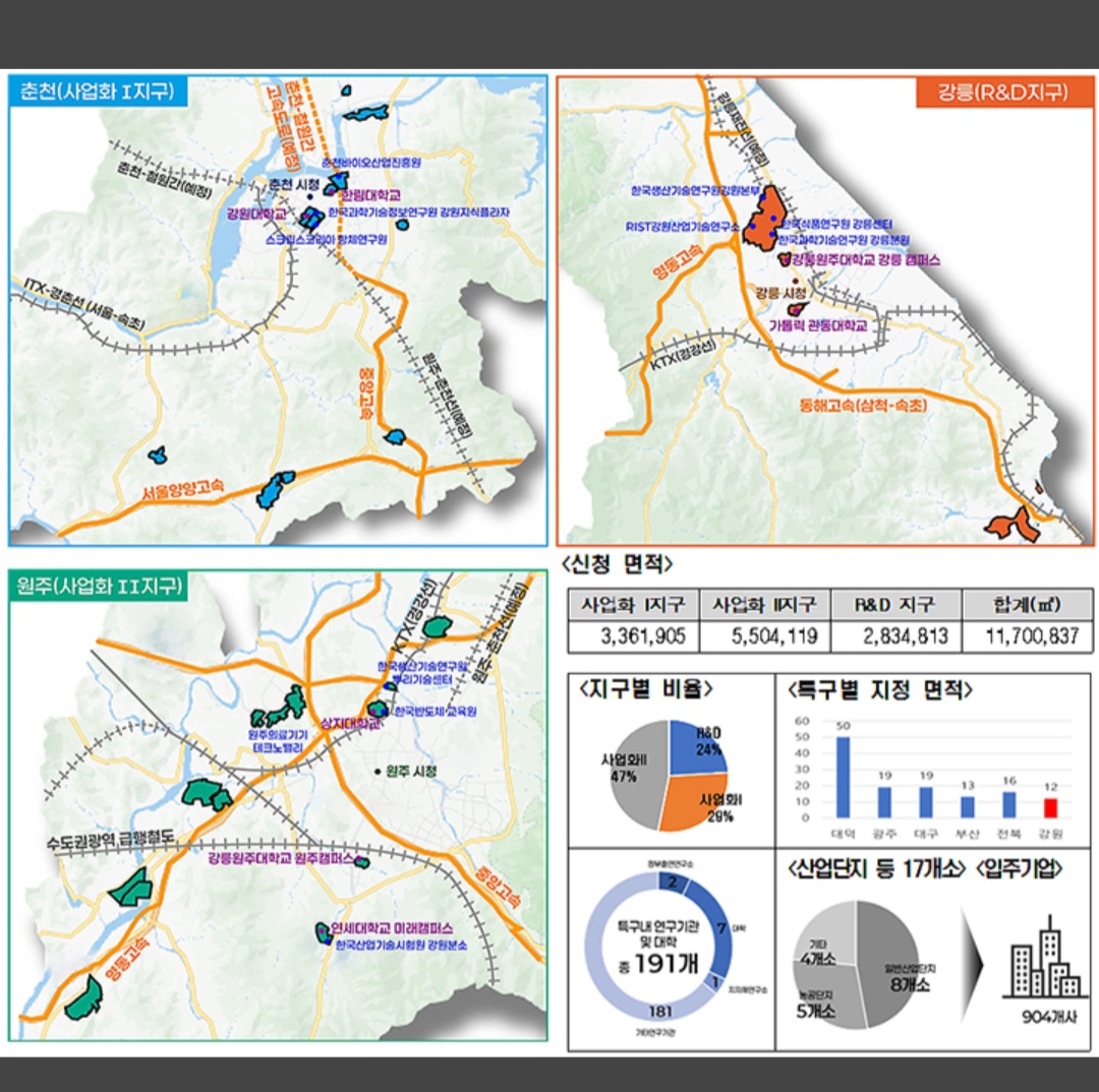 이번 강원연구개발특구는 전북특구 지정 이후 10년 만의 신규 지정으로, 바이오 신소재(춘천), 디지털 헬스케어(원주), 반도체(센서) 소재·부품(강릉) 등 3대 특화산업을 중심으로 집중 육성할 예정이다.