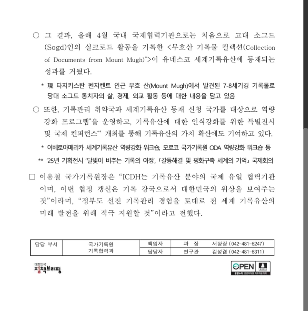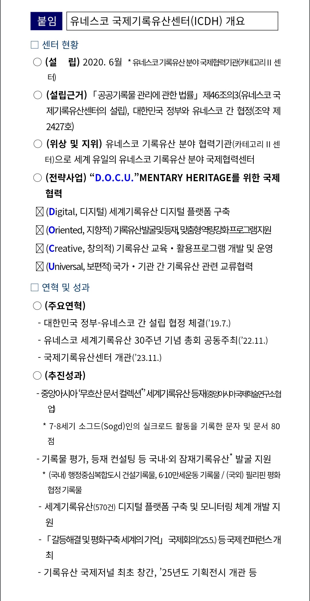 #한-유네스코 세계기록유산 협정 갱신으로 ICDH, 기록유산 정보 허브로 자리매김