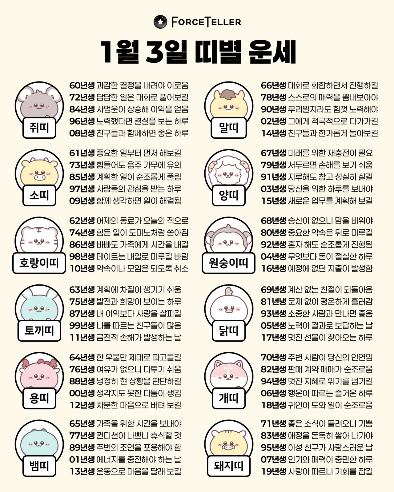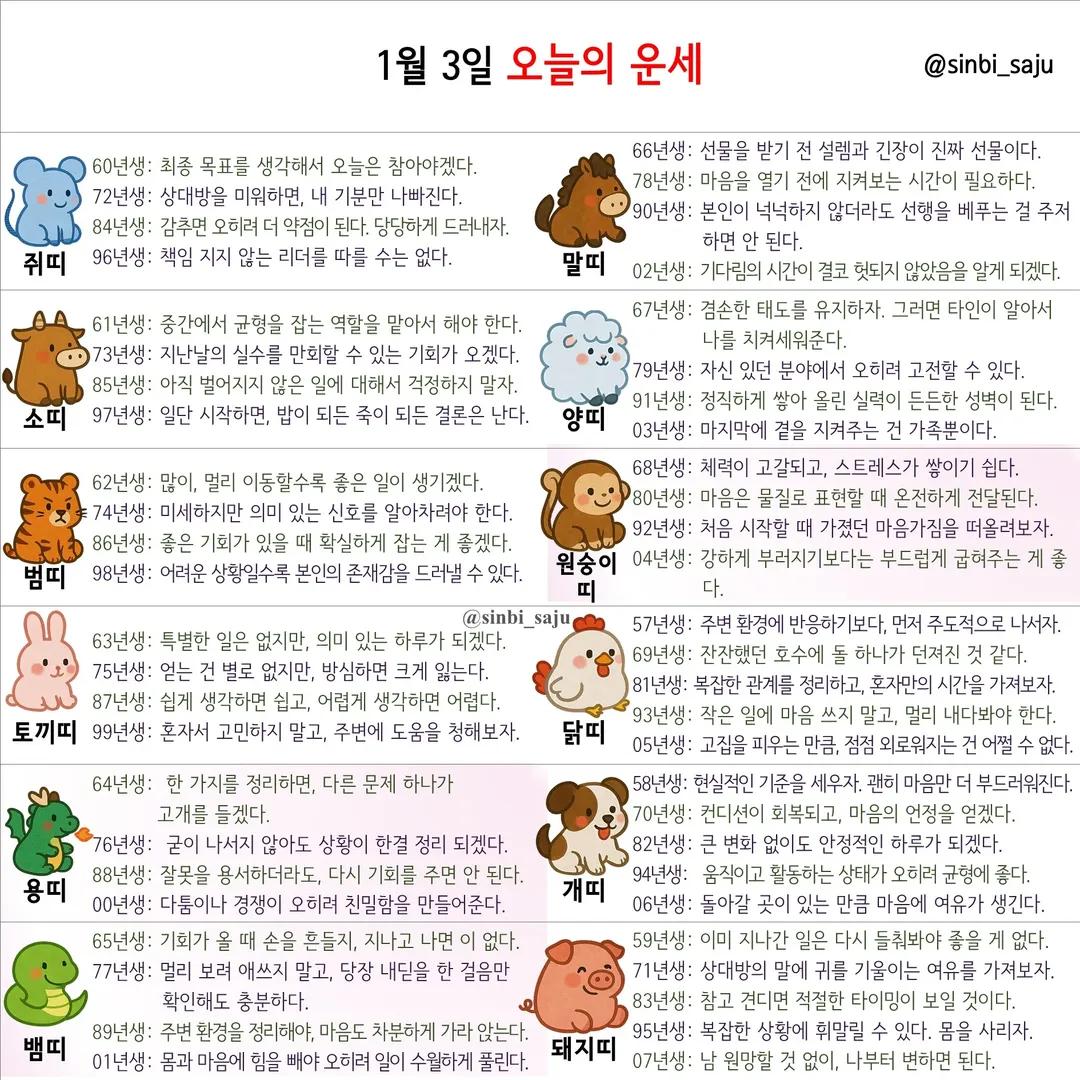 #2026년 병오년(丙午年)1월3일. 더사주.별자리.일일운세.띠별운세