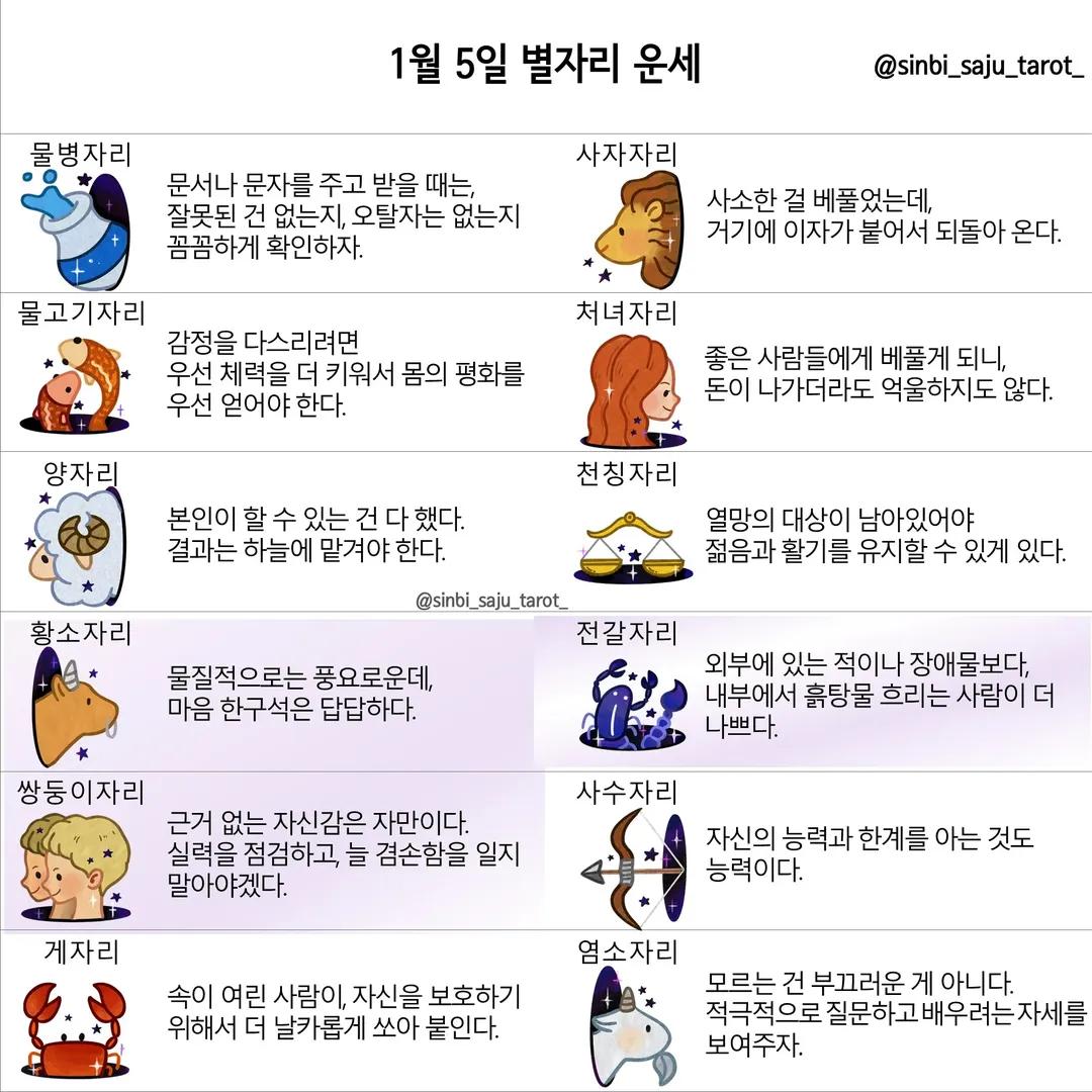 #2026년 병오년(丙午年)1월5일. 더사주.별자리.일일운세.띠별운세