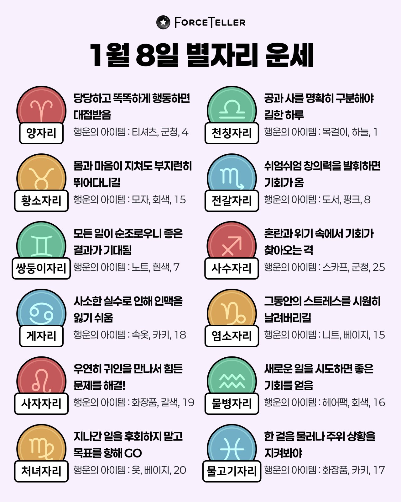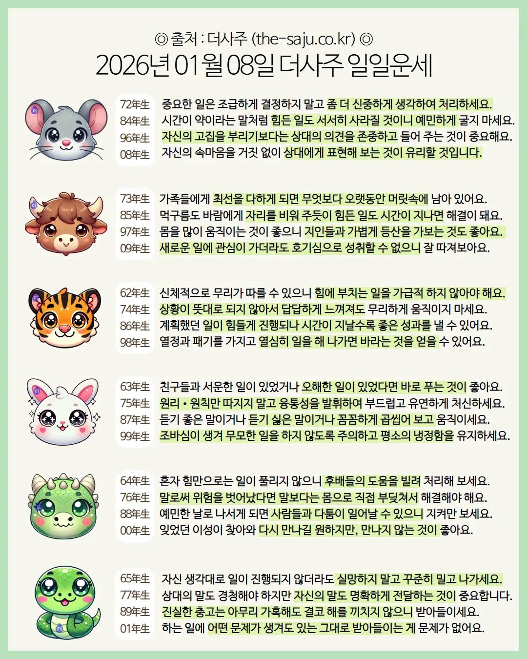 #2026년 병오년(丙午年)1월8일. 더사주.별자리.일일운세.띠별운세