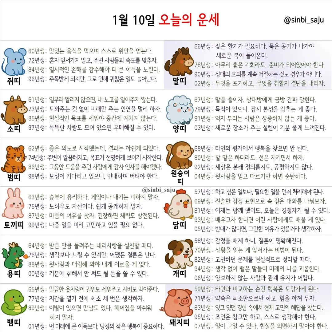 #2026년 병오년(丙午年)1월10일. 더사주.별자리.일일운세.띠별운세