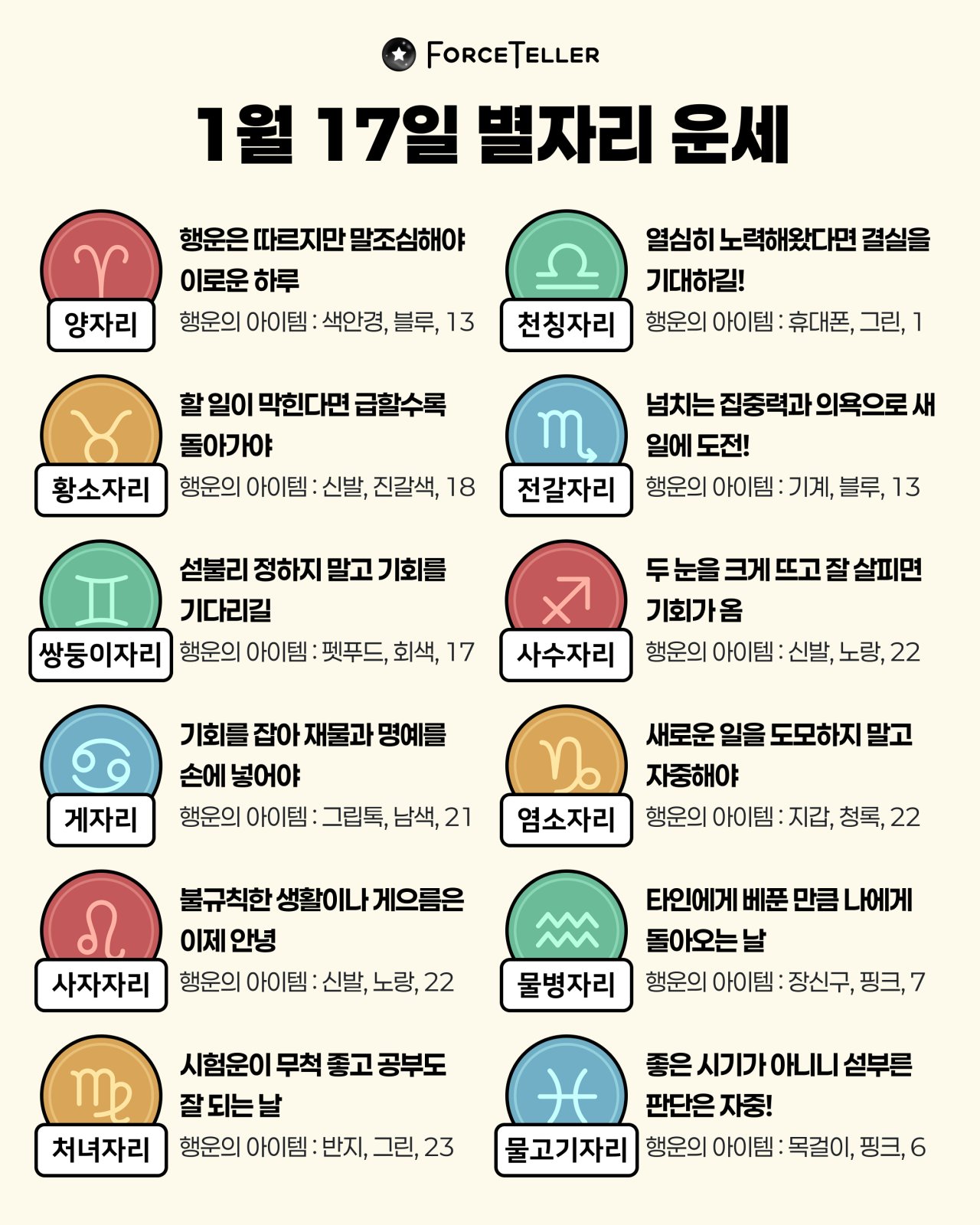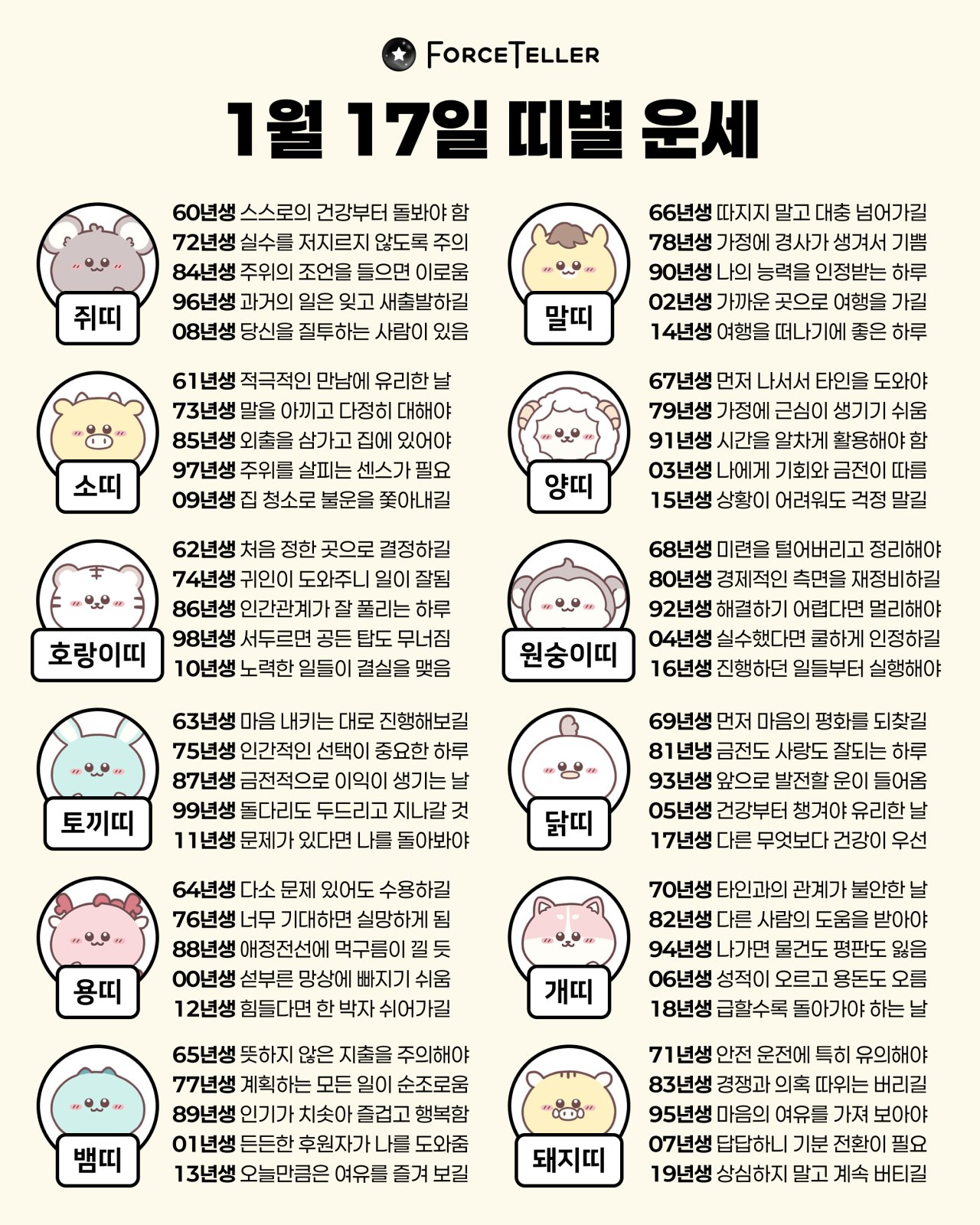 #2026년 병오년(丙午年)1월17일. 더사주.별자리.일일운세.띠별운세