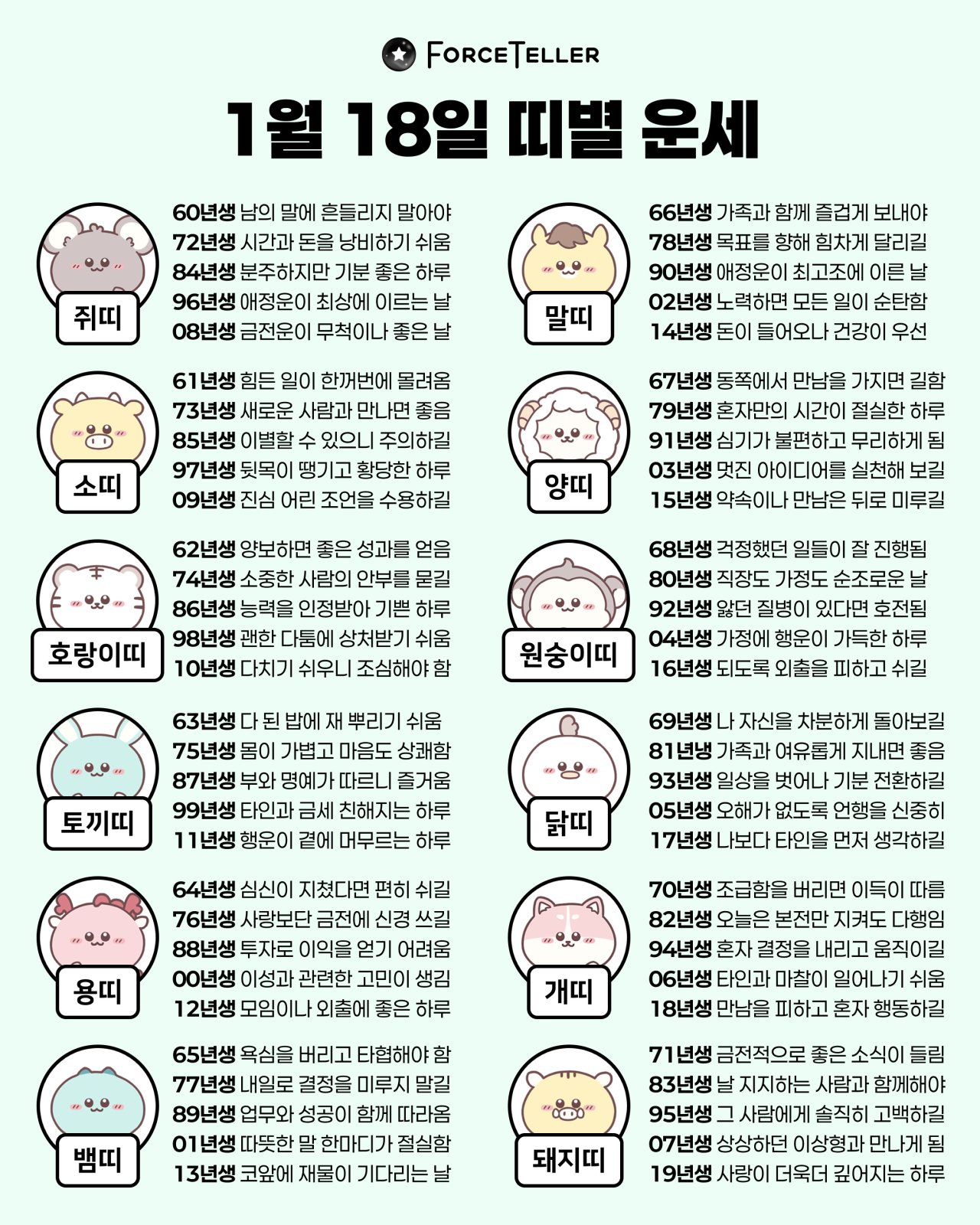 #2026년 병오년(丙午年)1월18일. 더사주.별자리.일일운세.띠별운세