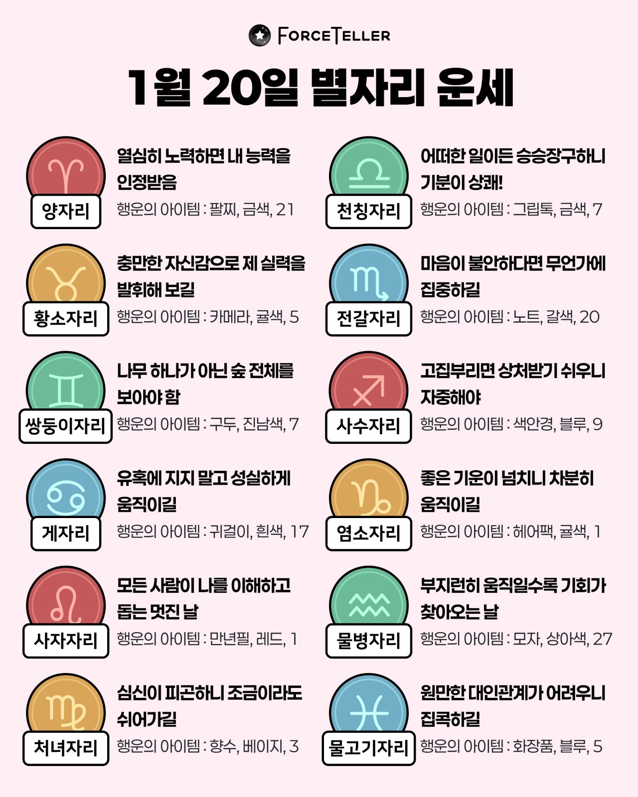 #2026년 병오년(丙午年)1월20일. 더사주.별자리.일일운세.띠별운세