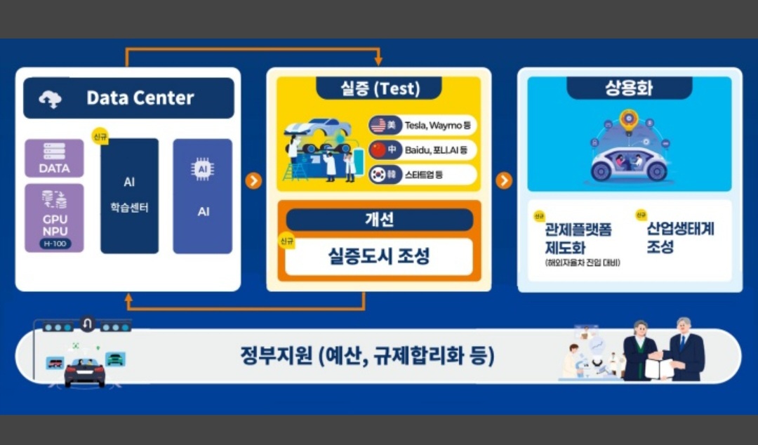 이 계획은 '새 정부 경제성장 전략'과 '자율주행차 산업 경쟁력 제고 방안' 후속 조치로, 국토부는 대규모 실도로 실증을 통해 자율주행 AI 기술과 서비스의 국제 경쟁력을 끌어올릴 방침이다.