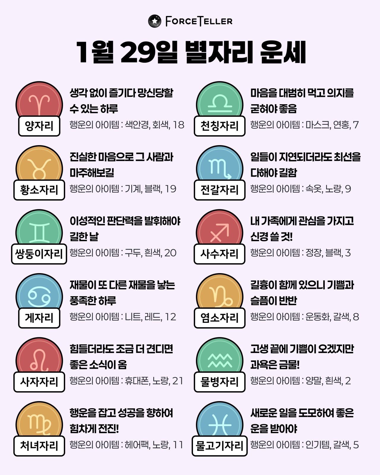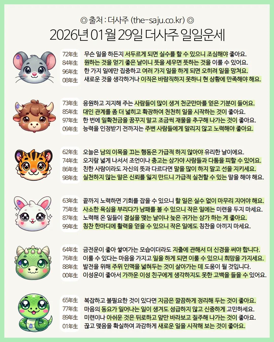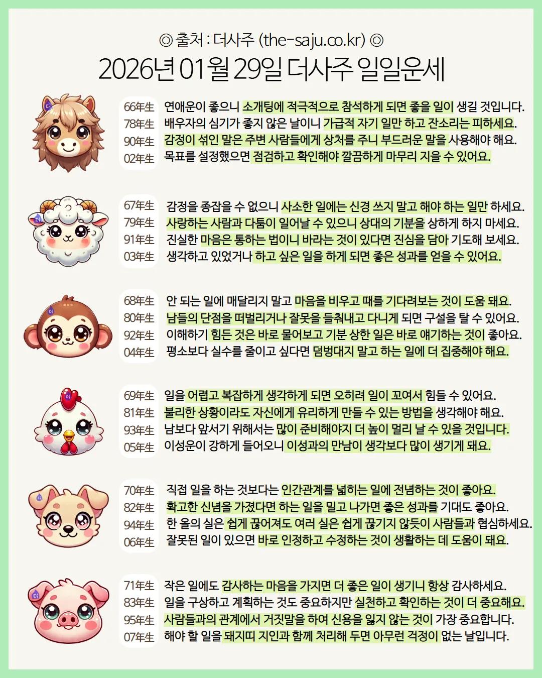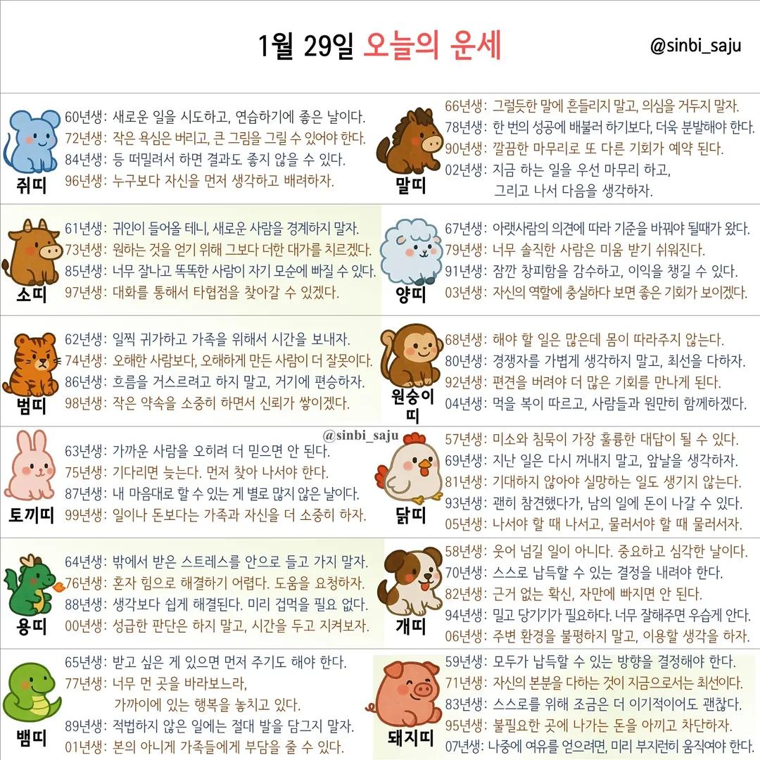 #2026년 병오년(丙午年)1월29일. 더사주.별자리.일일운세.띠별운세