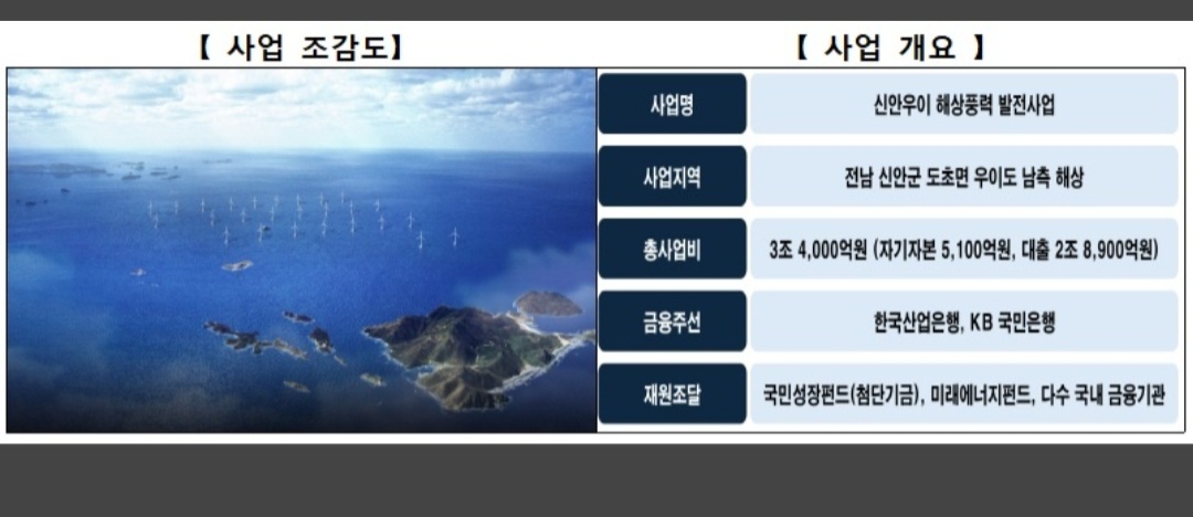 이날 승인된 신안우이 해상풍력 사업은 SPC출자자의 자본금 납입 및 결성 등을 거쳐 3분기부터 본격 자금 집행이 이뤄질 예정이다.