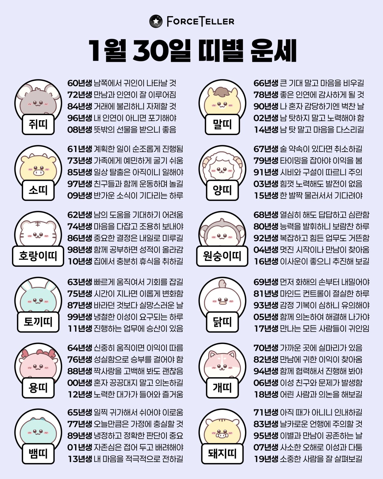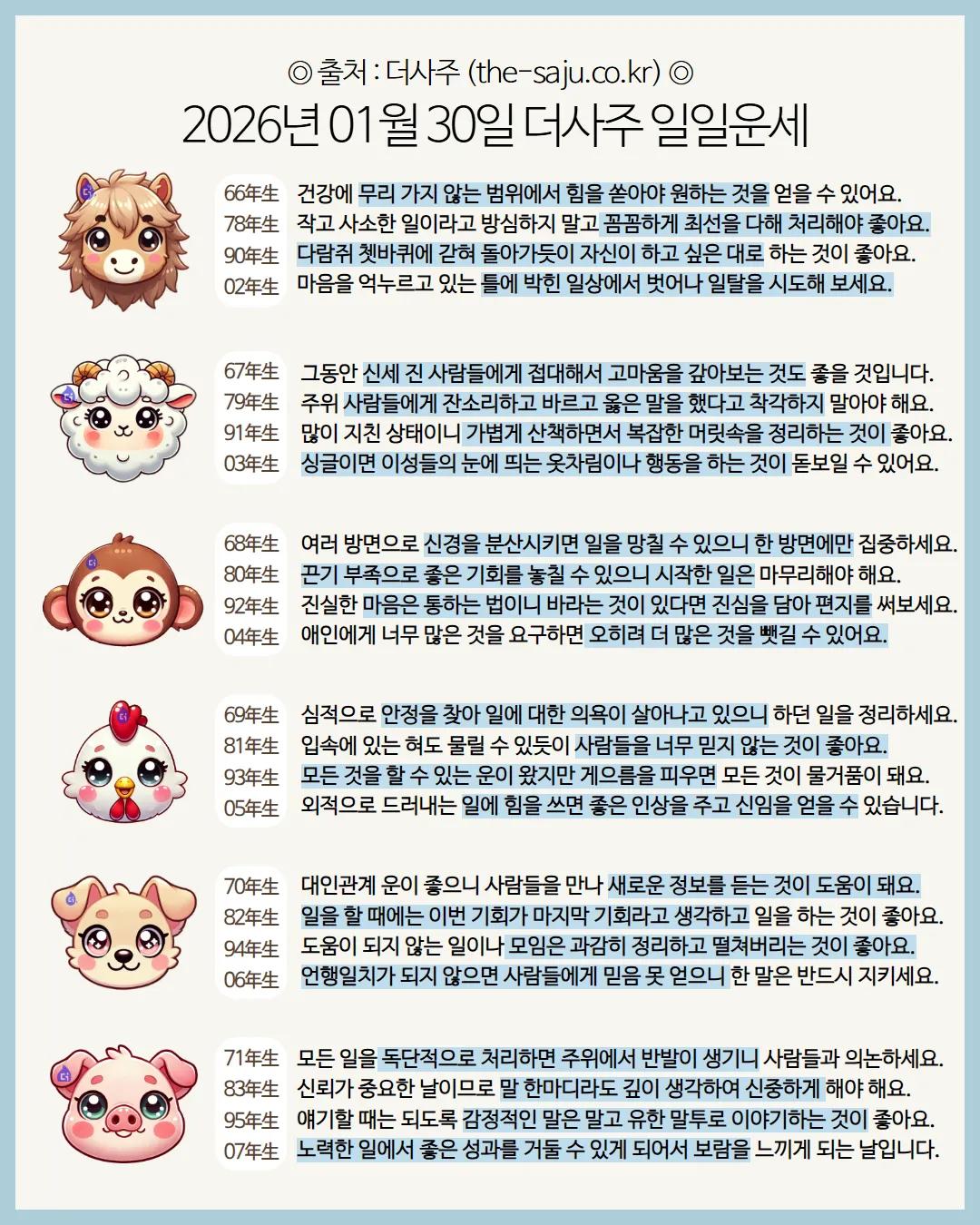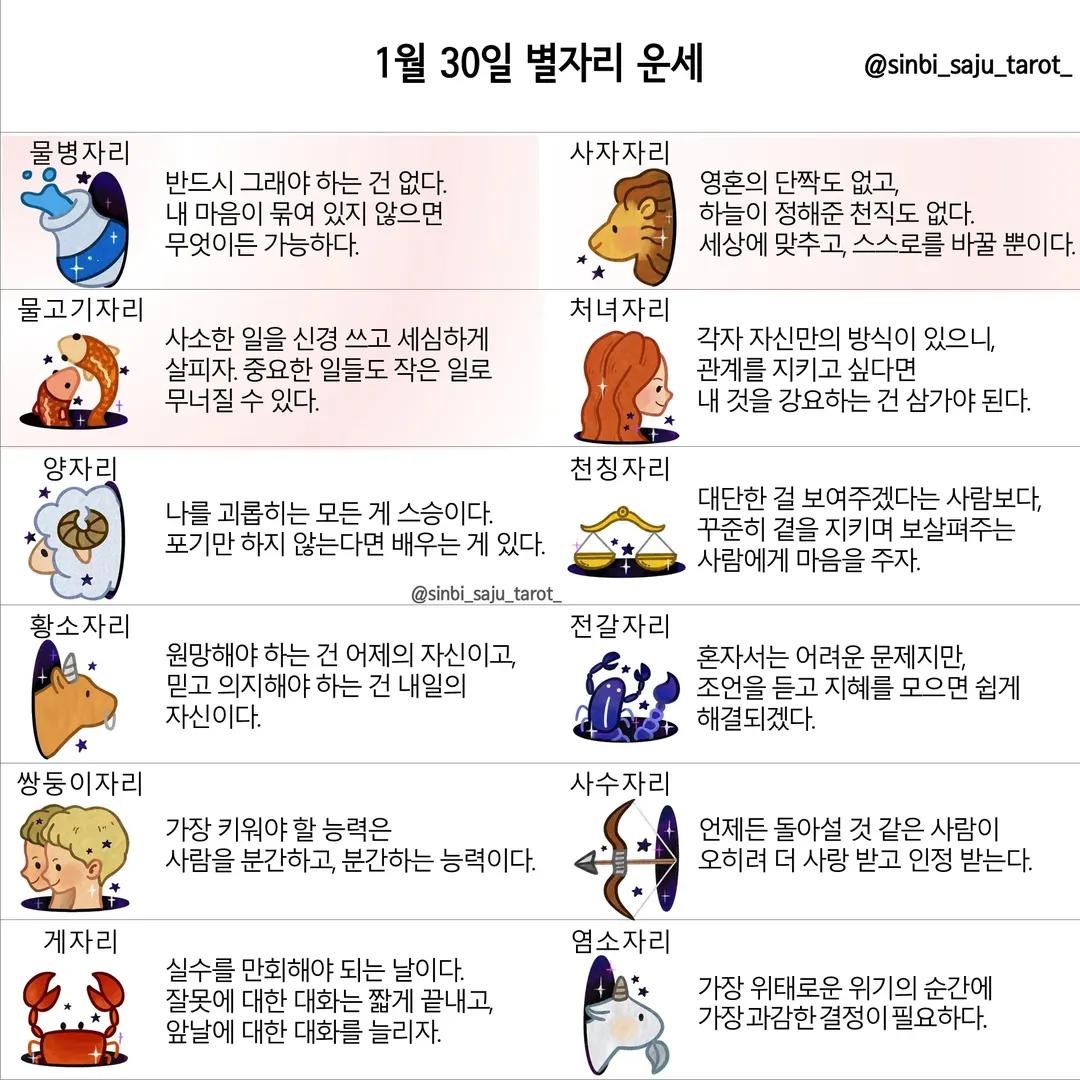 #2026년 병오년(丙午年)1월30일. 더사주.별자리.일일운세.띠별운세