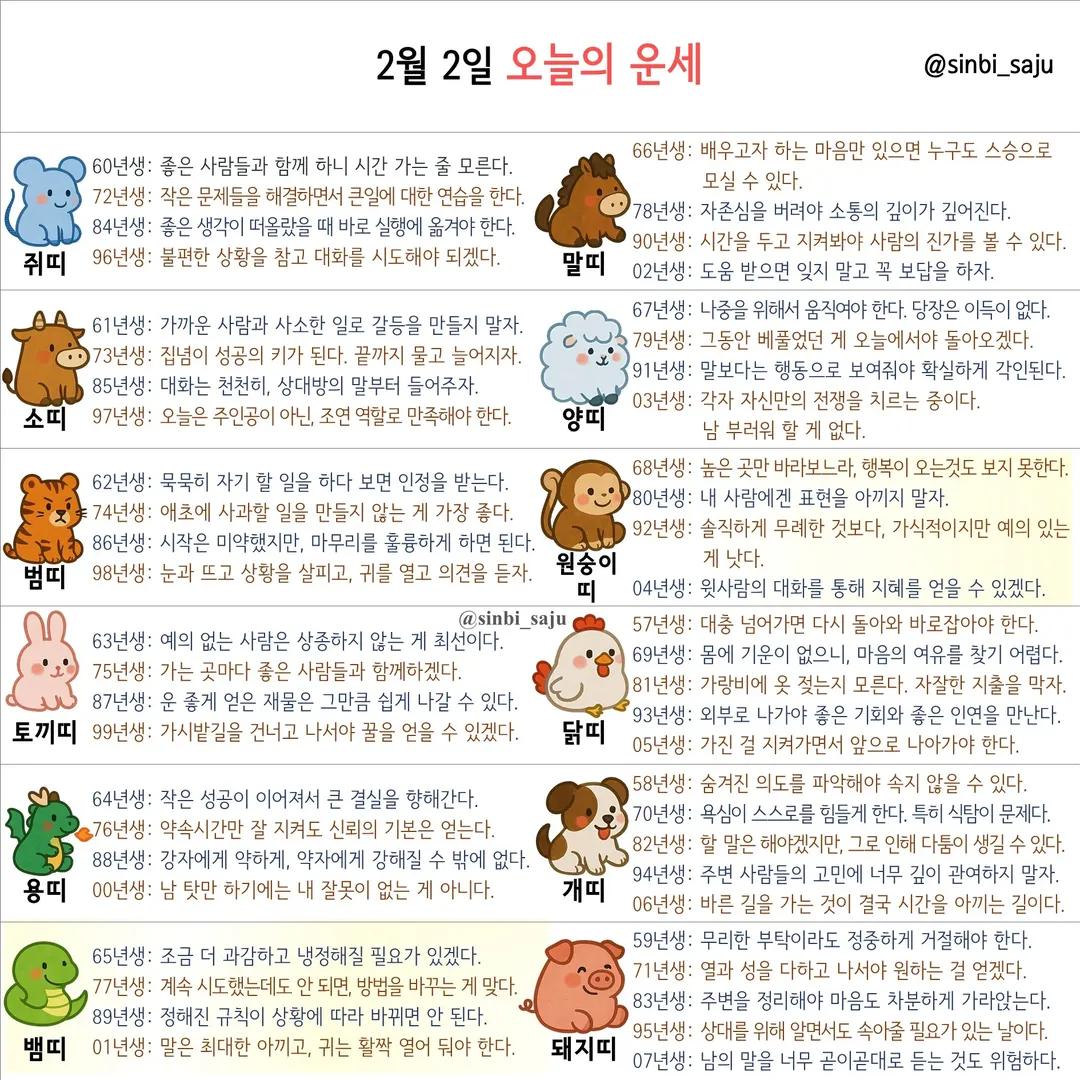 #2026년 병오년(丙午年)2월2일. 더사주.별자리.일일운세.띠별운세