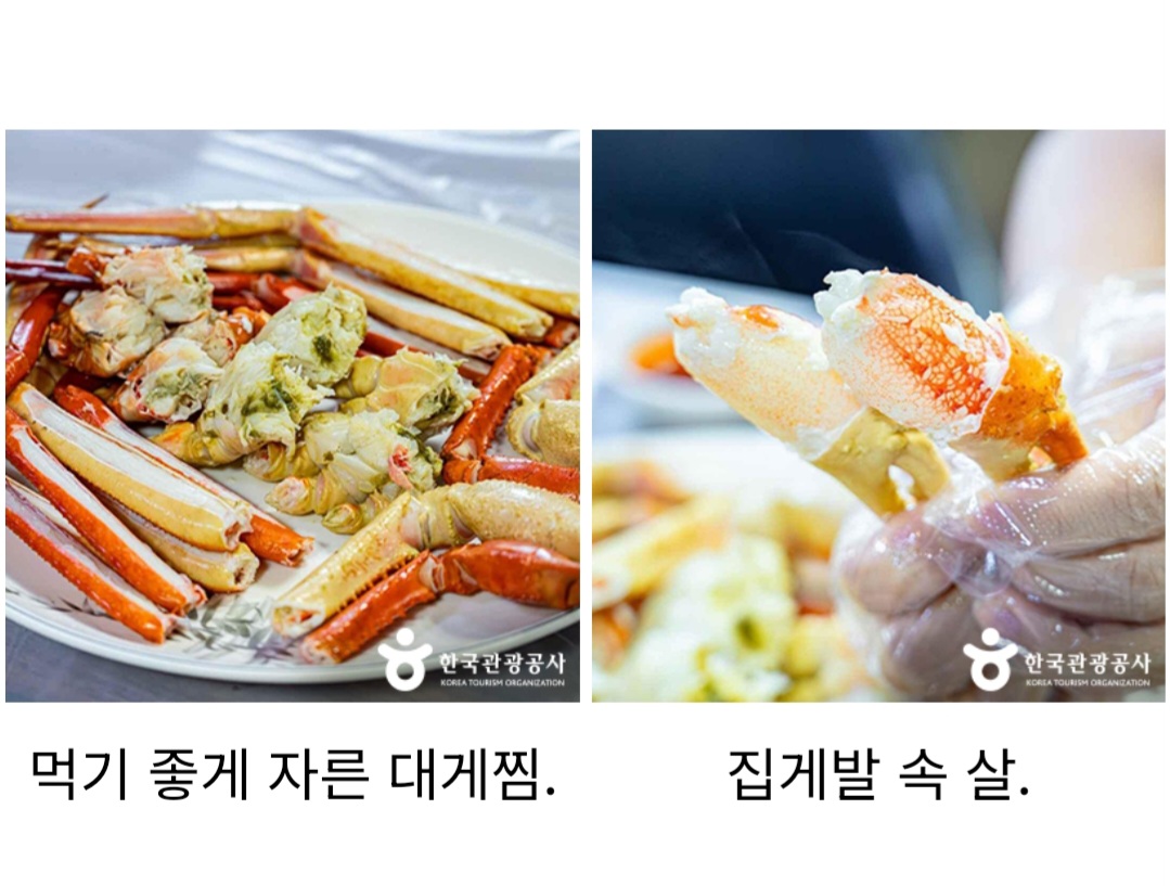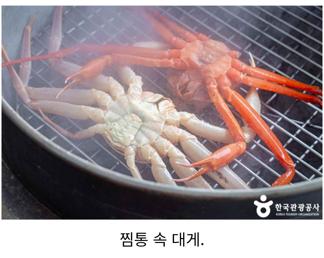 대게는 겨울부터 봄에 이르는 내내(12~5월) 잡히지만, 맛이 제대로 차오른 대게를 먹으려면 1~2월을 추천한다.
