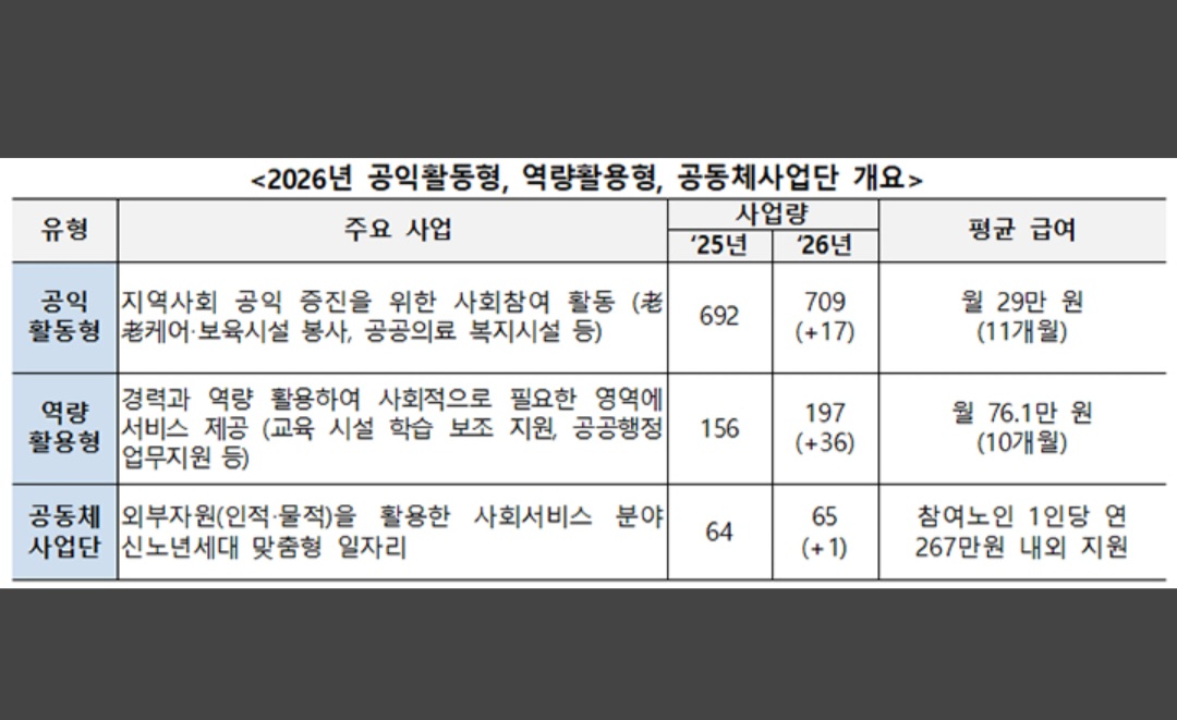 문의: 보건복지부 노인지원과(044-202-3472), 한국노인인력개발원 홍보기획부(031-8035-7581)