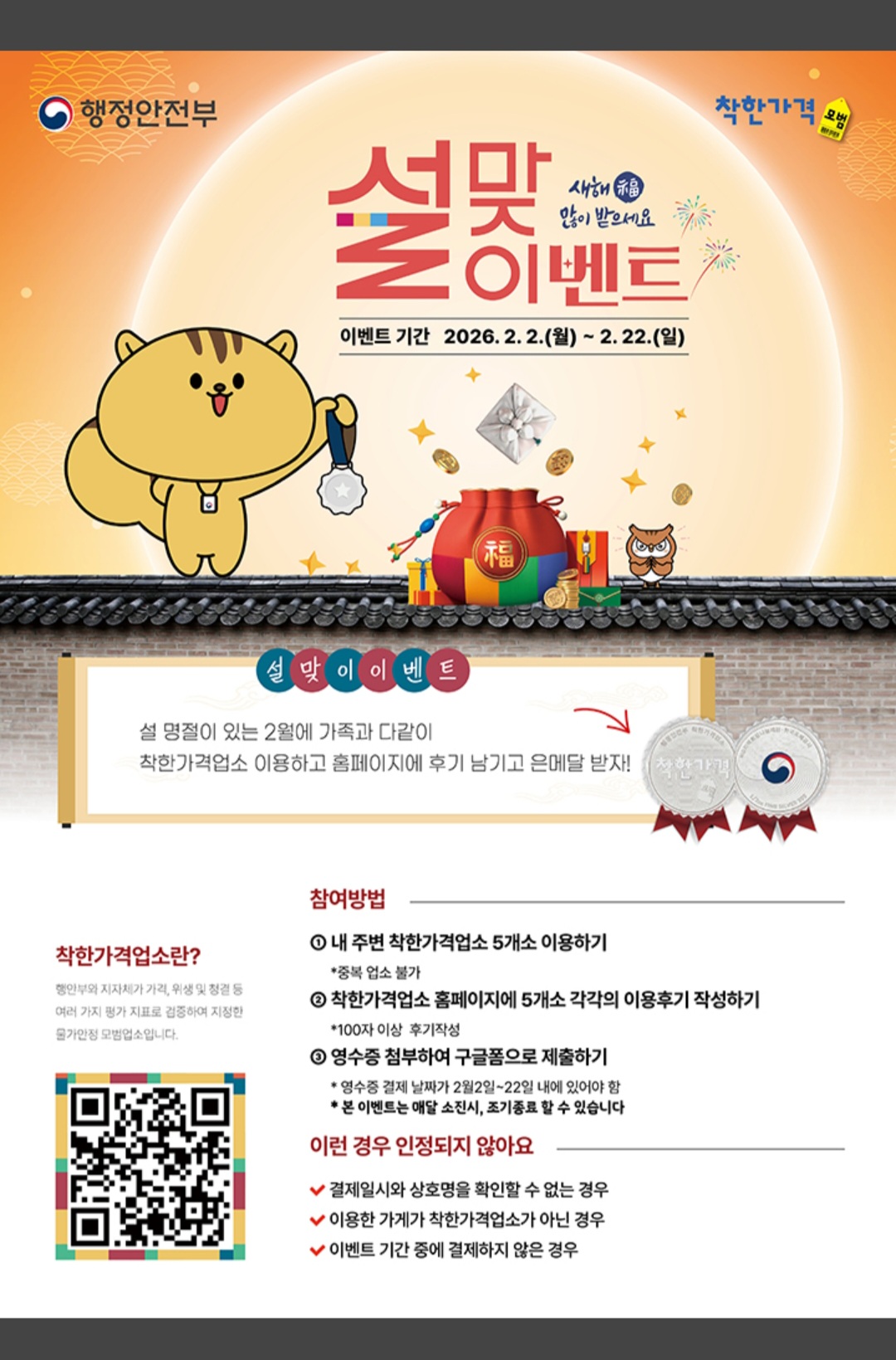 ☞ 설맞이 착한가격업소 이용후기 이벤트 안내 바로가기