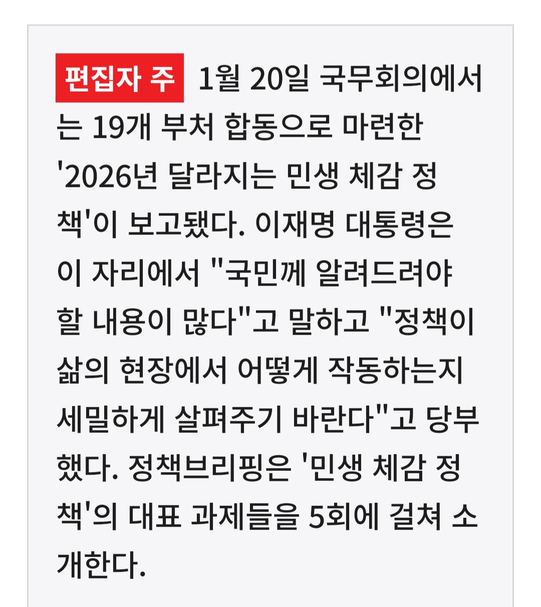 이러한 기조는 올해 추진하는 '민생 체감 정책'을 통해, 선언을 넘어 국민 삶의 변화로 구체화되고 있다.