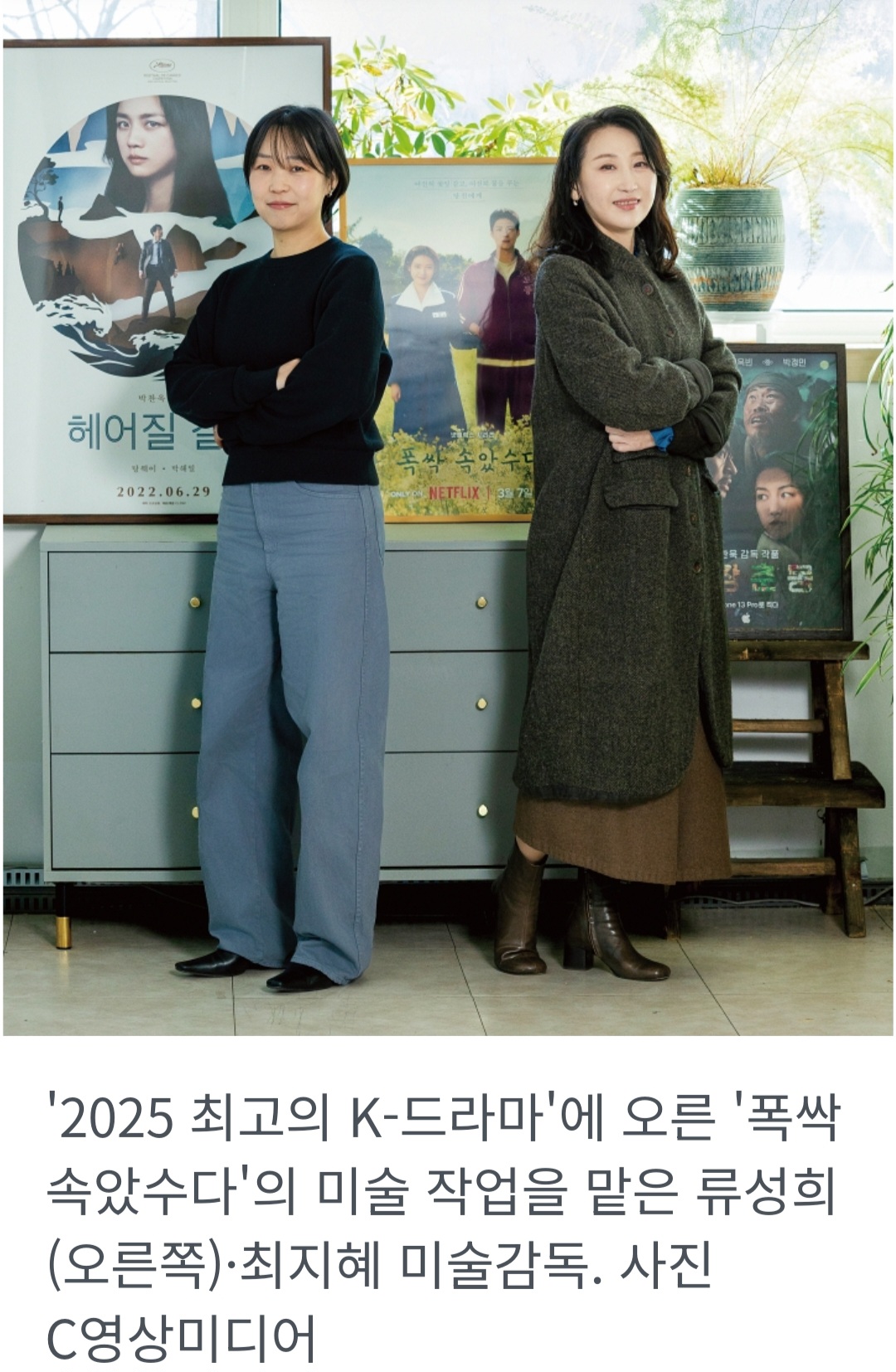K-드라마 한 편의 영향력이 화면 밖까지 이어진 데는 작품 속 공간이 설득력 있게 구현됐다는 점을 빼놓을 수 없다. '폭싹'은 1950년대부터 2020년대까지 아우르는 시대극으로 시간의 흐름을 시각적으로 설득해야 하는 '미술'의 역할이 특히 중요했다. 그 공간을 설계한 사람이 류성희·최지혜 미술감독이다.