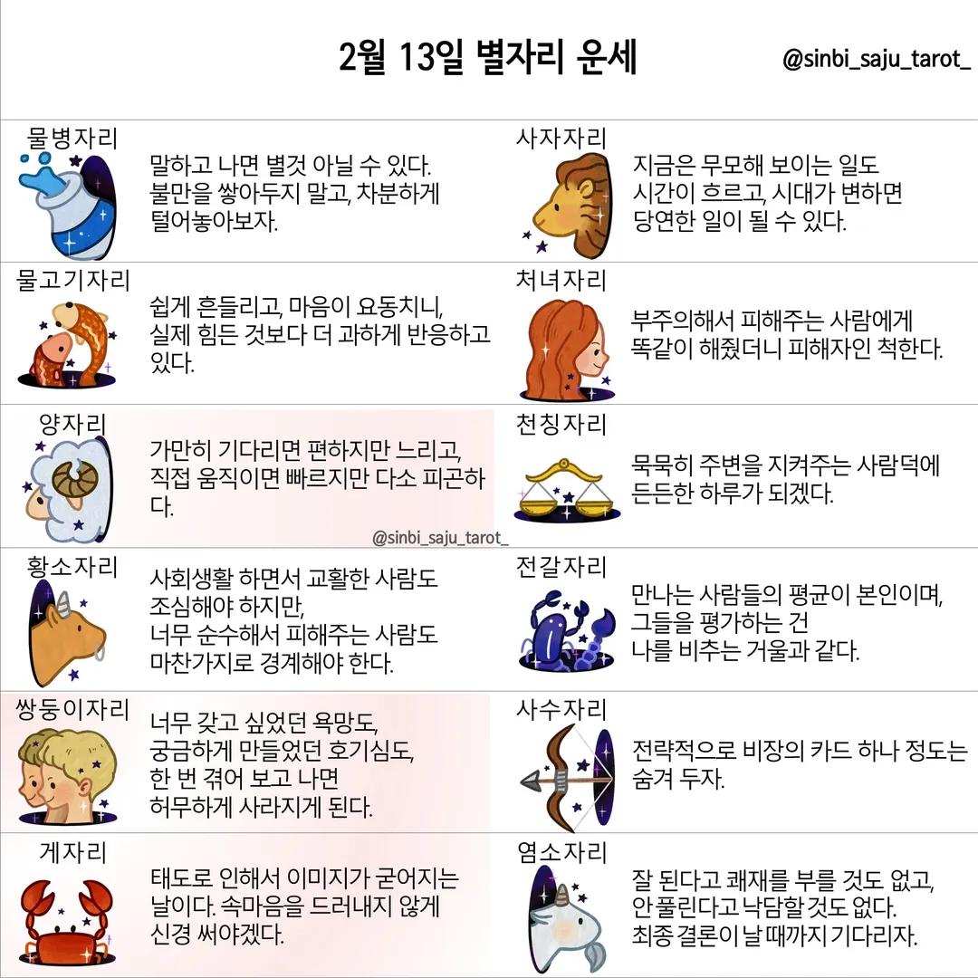 #2026년 병오년(丙午年)2월13일. 더사주.별자리.일일운세.띠별운세