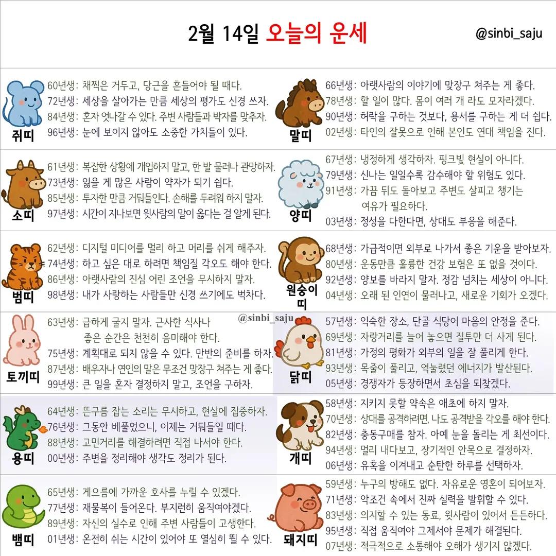 #2026년 병오년(丙午年)2월14일. 더사주.별자리.일일운세.띠별운세