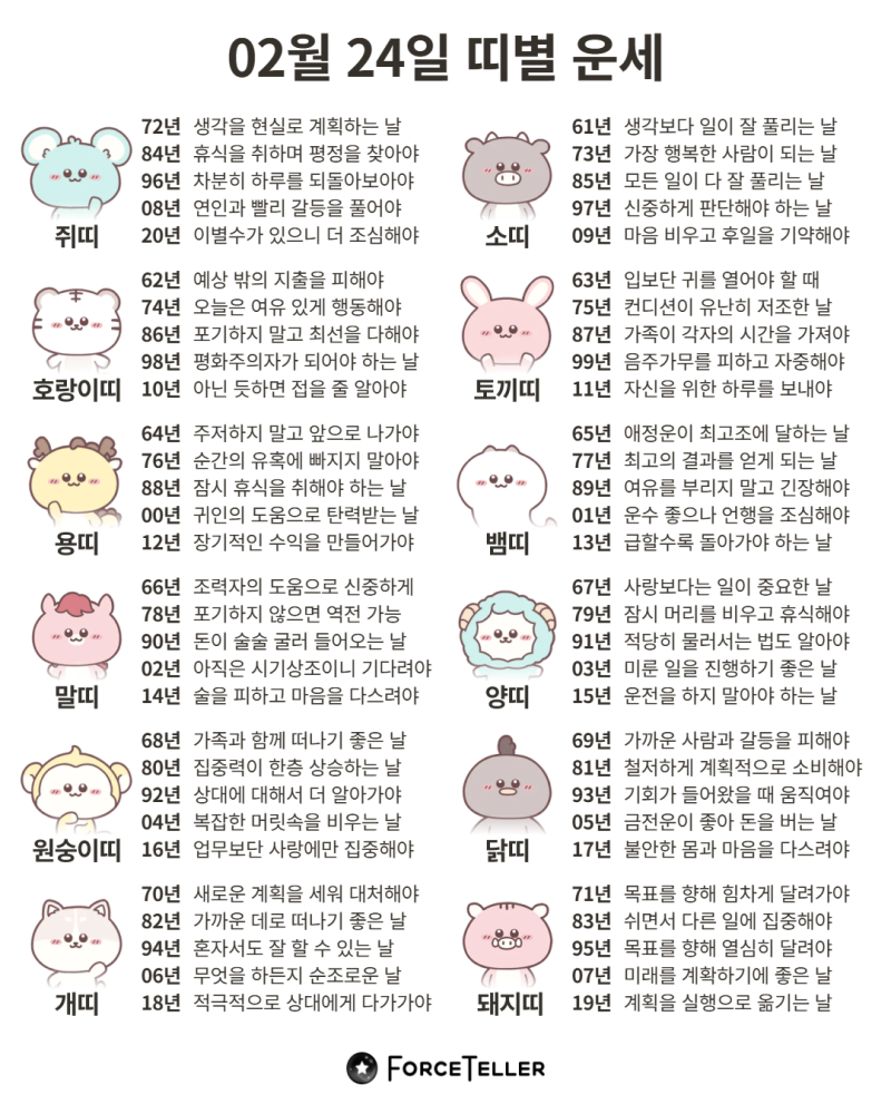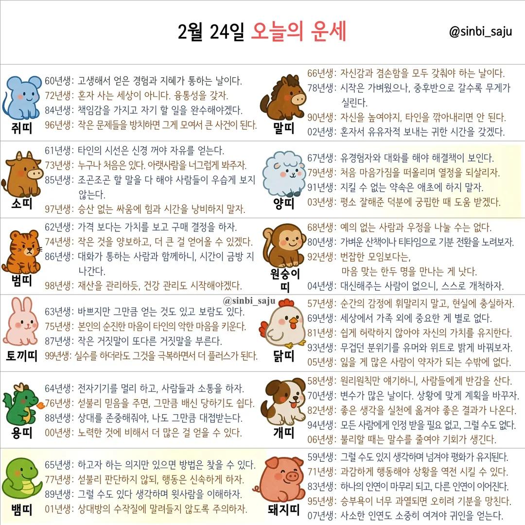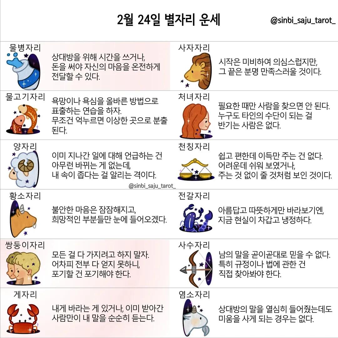 #2026년 병오년(丙午年)2월24일. 더사주.별자리.일일운세.띠별운세