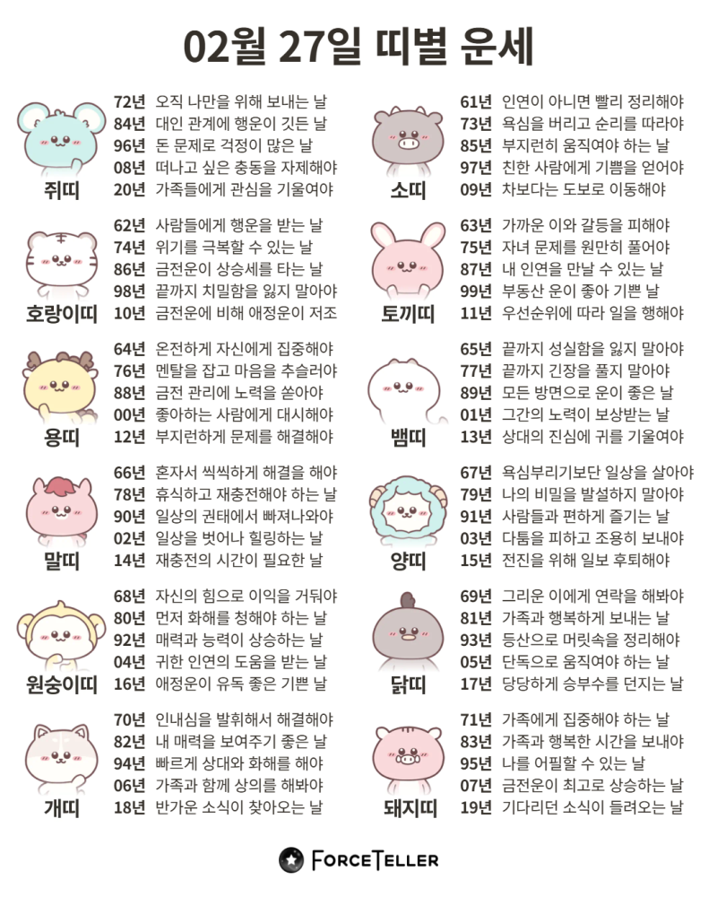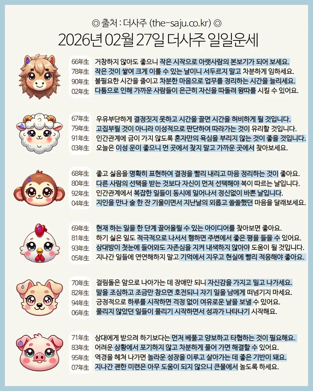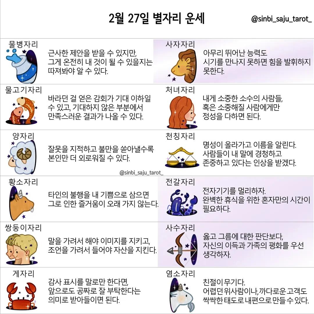 #2026년 병오년(丙午年)2월27일. 더사주.별자리.일일운세.띠별운세