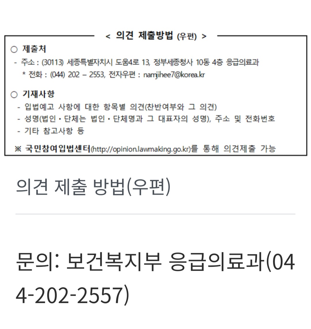 관련 의견은 4월 8일까지 보건복지부 응급의료과 또는 국민참여입법센터를 통해 제출할 수 있다.