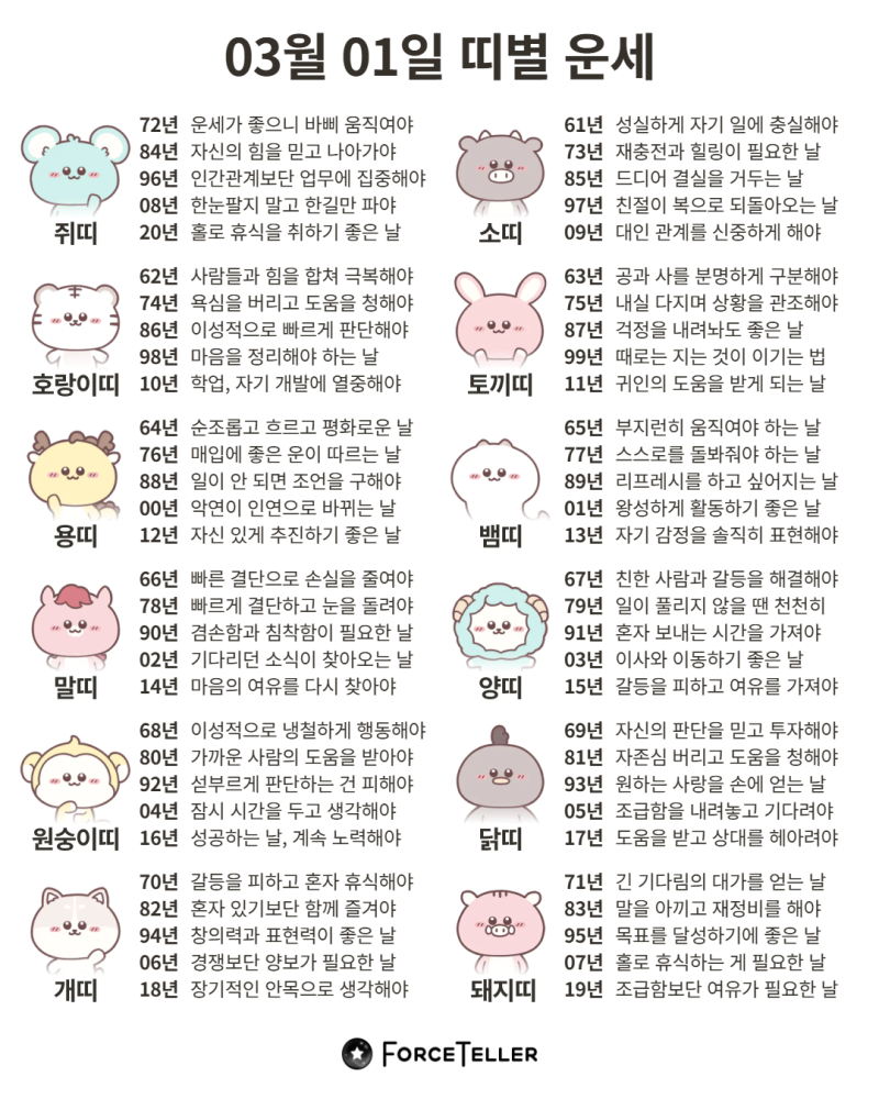 #2026년 병오년(丙午年)3월1일. 더사주.별자리.일일운세.띠별운세