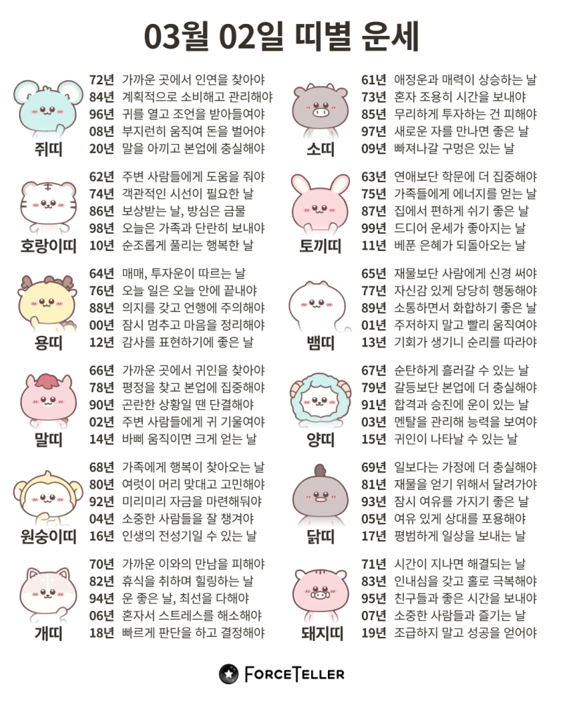 #2026년 병오년(丙午年)3월2일. 더사주.별자리.일일운세.띠별운세