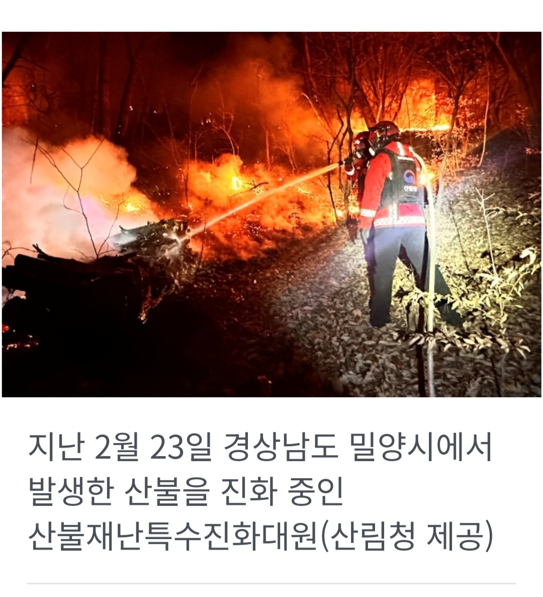 정부는 지난해 영남권 초대형 산불 이후 마련한 '관계기관 합동 산불 종합대책'에 따라 ▲산불 진화헬기 신속 출동(30분 이내 도착) ▲군 헬기 지원 확대(143대) ▲산림·소방 등 인력·장비 보강 및 적극적인 산불진화 투입 등 국가 가용자원을 총동원해 대응하고 있다.