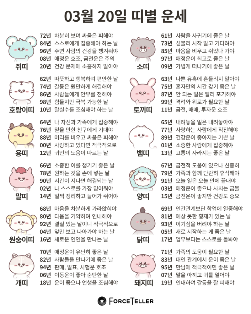 #2026년 병오년(丙午年)3월20일. 더사주.별자리.일일운세.띠별운세