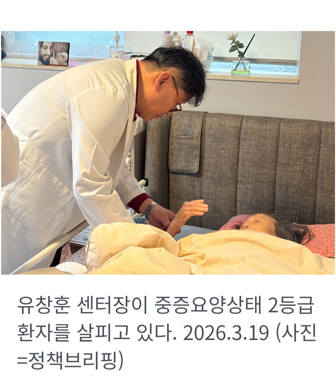 침대에 누운 어르신 곁으로 의료진이 다가갔다. 유창훈 센터장은 맥을 짚으며 상태를 확인했고, 간호사는 굳어진 근육을 하나하나 풀어주며 경직 상태를 살폈다.