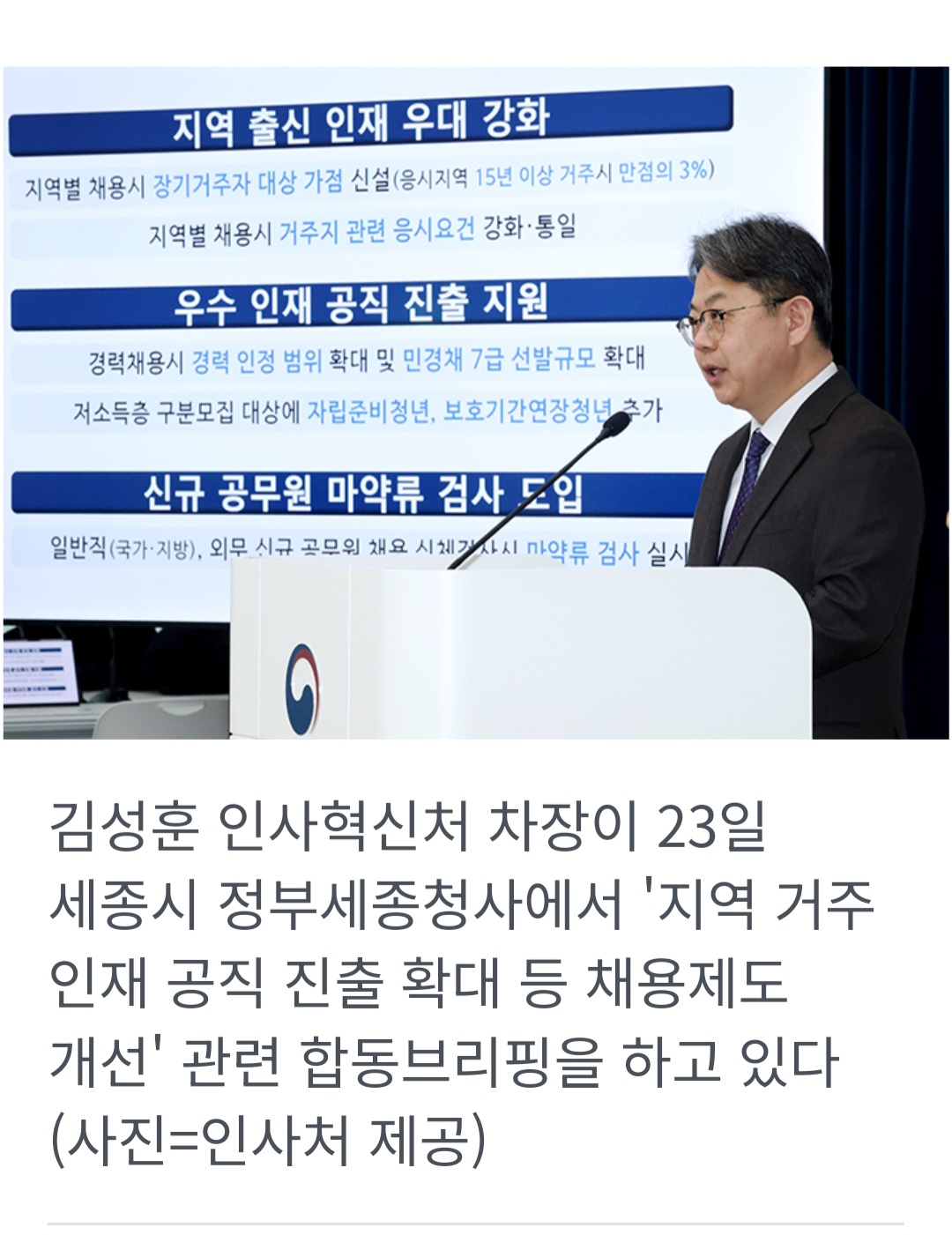 최동석 인사처장은 "지역 소멸과 청년 고용률 하락, 마약류 확산 등 사회 환경 변화를 반영해 공무원 채용제도에도 변화가 필요한 시점"이라며 "앞으로도 다양한 인재가 공직에 진출해 역량을 펼칠 수 있도록 적극적으로 지원하겠다"고 말했다.