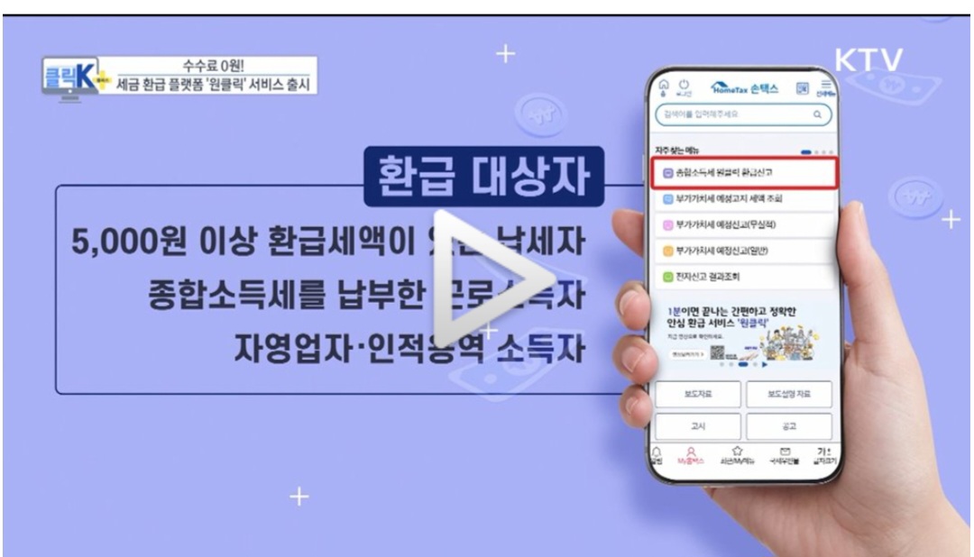 #클릭K+수수료 0원! 세금 환급 플랫폼 '원클릭' 서비스 출시