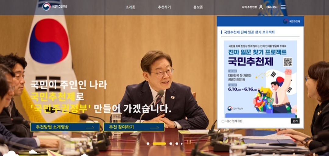 한편, 국민추천제는 인사혁신처가 운영하는 국민추천제 누리집(https://www.hrdb.go.kr/OpenRecommend/)에 추천 글을 남기거나, 이 대통령의 공식 SNS(페이스북, 인스타그램, X(트위터)) 계정 혹은 전자우편(openchoice@korea.kr) 등을 활용해 누구나 참여할 수 있다.