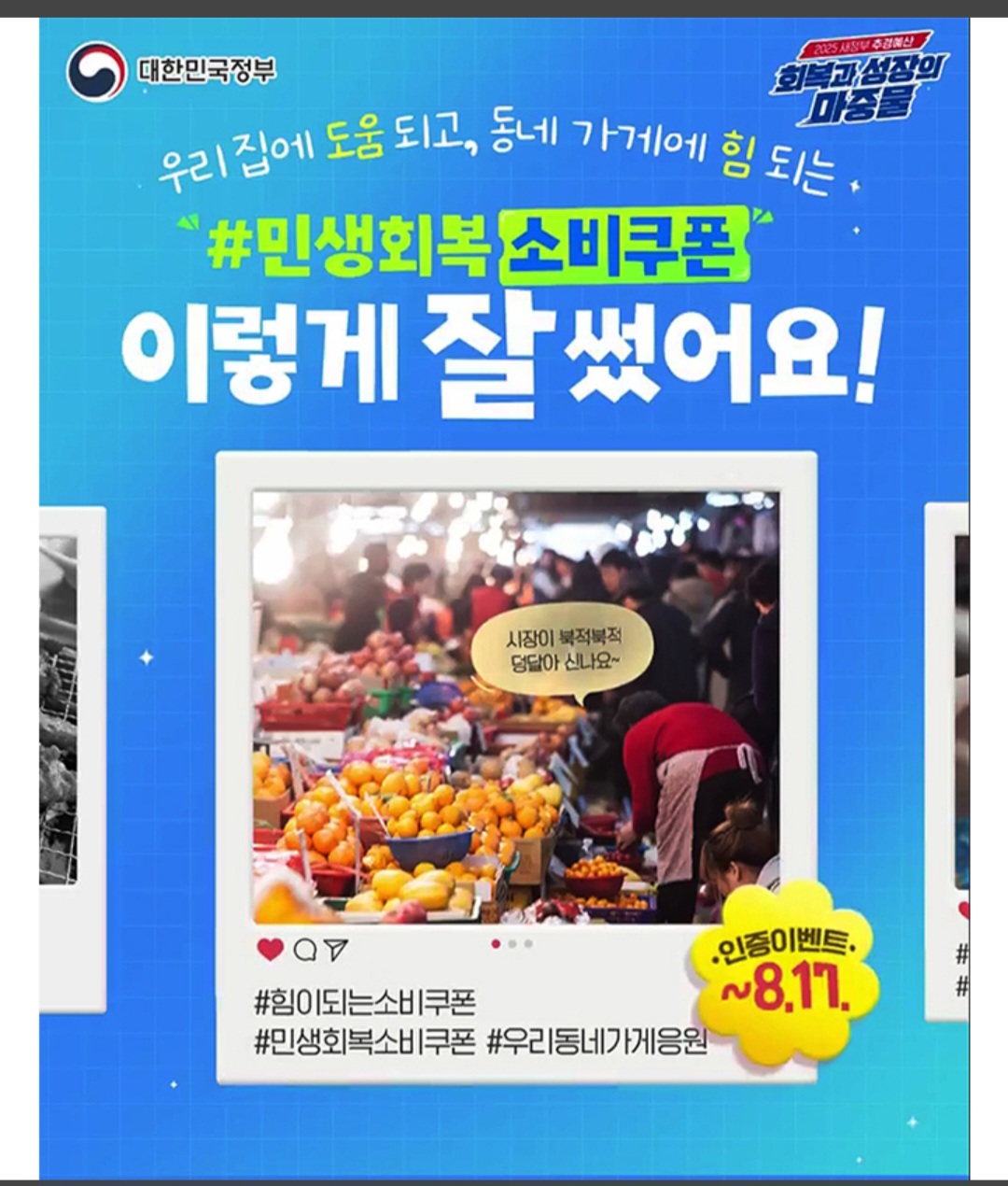 전 국민에게 힘이 되는 '민생회복 소비쿠폰', 우리 동네에서 가치 있게 사용한 이야기를 나누는 인증 이벤트가 시작됐다.
