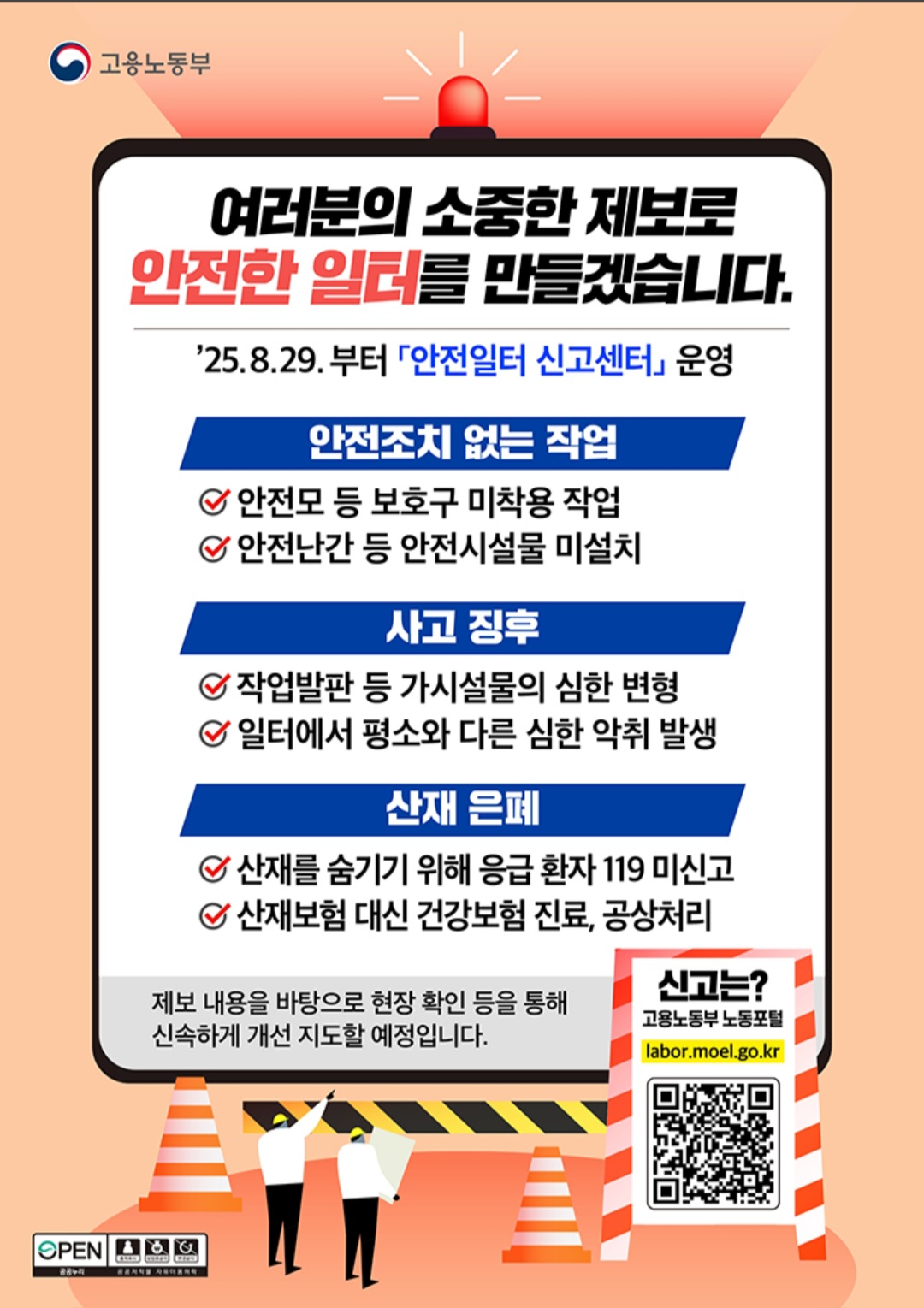 #국민 누구나 산재위험 신고…노동부, '안전일터 신고센터' 개설