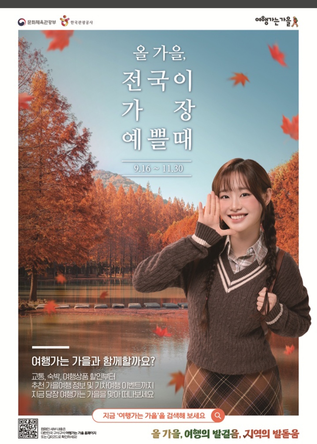 정부가 지역경제와 국내관광을 활성화하기 위해 11월까지 범국민 여행캠페인 '2025년 여행가는 가을'을 전개한다. 문화체육관광부와 행정안전부, 농림축산식품부, 해양수산부 등 관계부처와 대한상공회의소, 한국경제인협회 등 경제 6단체는 9월 16일 민·관 합동 선포식을 열고 이번 캠페인의 시작을 알렸다. 아울러 캠페인의 홍보대사로 가수 츄를 위촉했다.