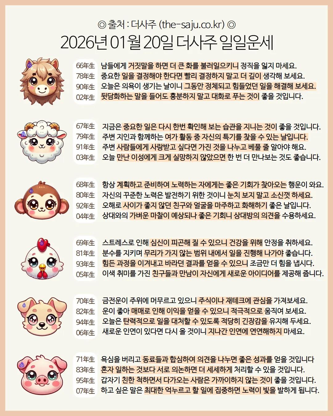#2026년 병오년(丙午年)1월20일. 더사주.별자리.일일운세.띠별운세