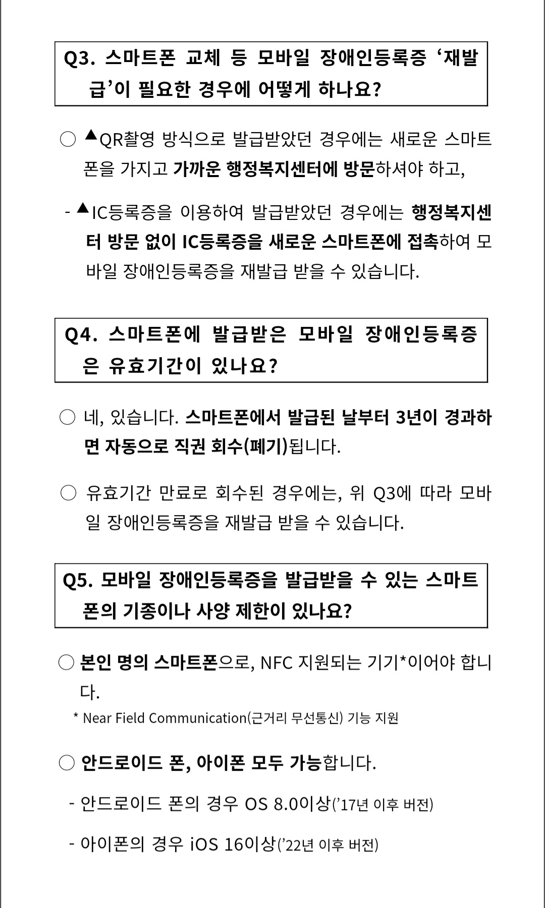 혹은 IC칩이 내장된 장애인등록증(이하 'IC등록증')을 새로 신청·수령한 이후 IC등록증을 스마트폰에 접촉하면 된다.