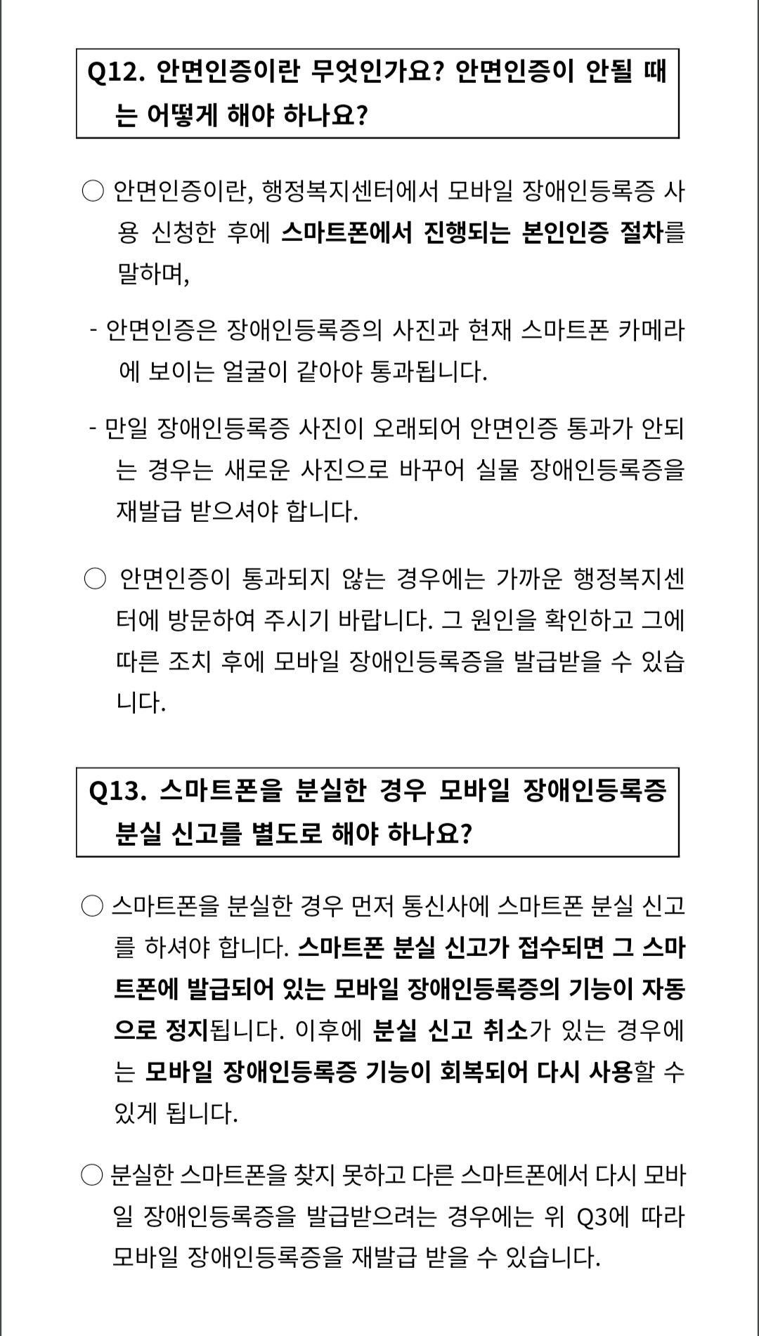 한편 모바일 장애인등록증 발급에 대해 궁금한 사항은 가까운 행정복지센터 또는 모바일 신분증 콜센터(1688-0990)에 문의하여 도움받을 수 있다.