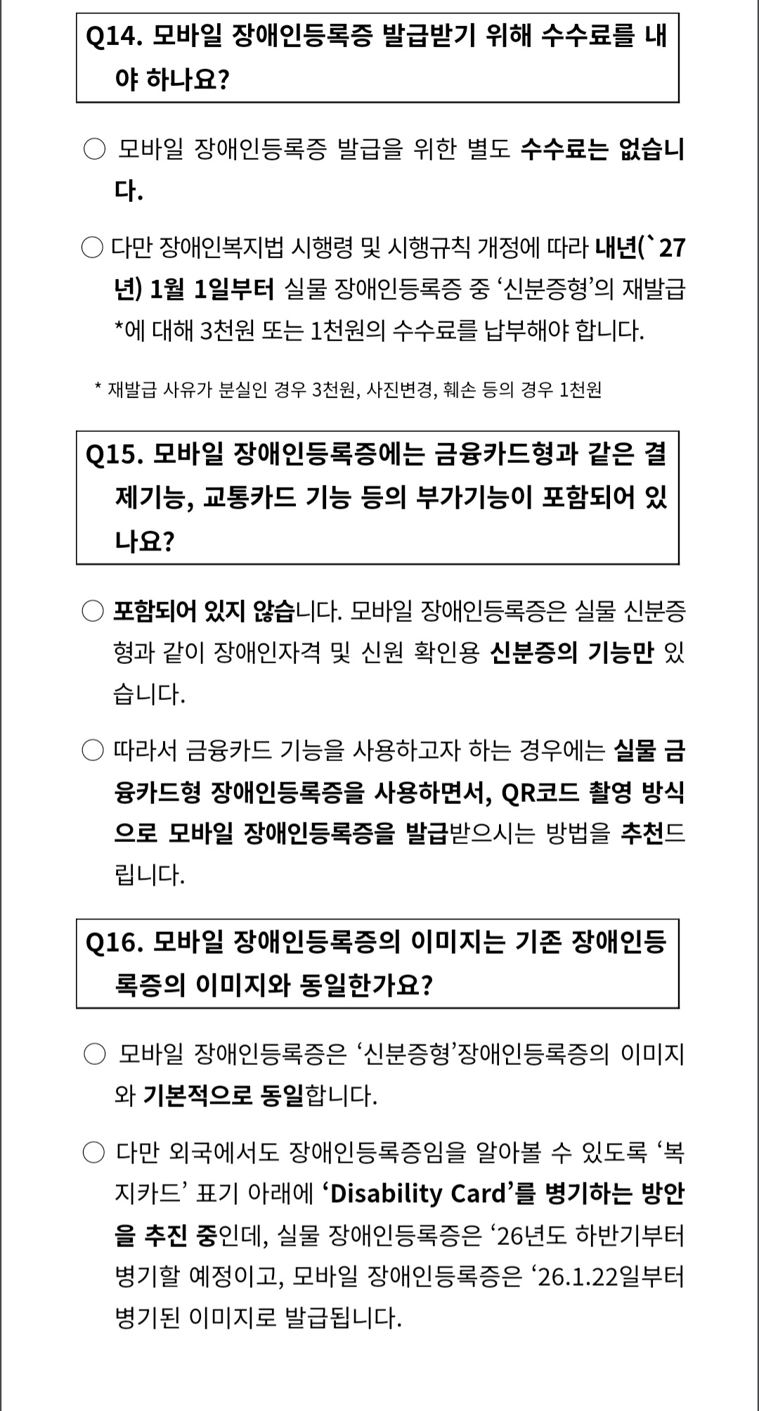 한편 금융위원회는 모바일 장애인등록증을 금융거래 실명확인증표로 인정했다.