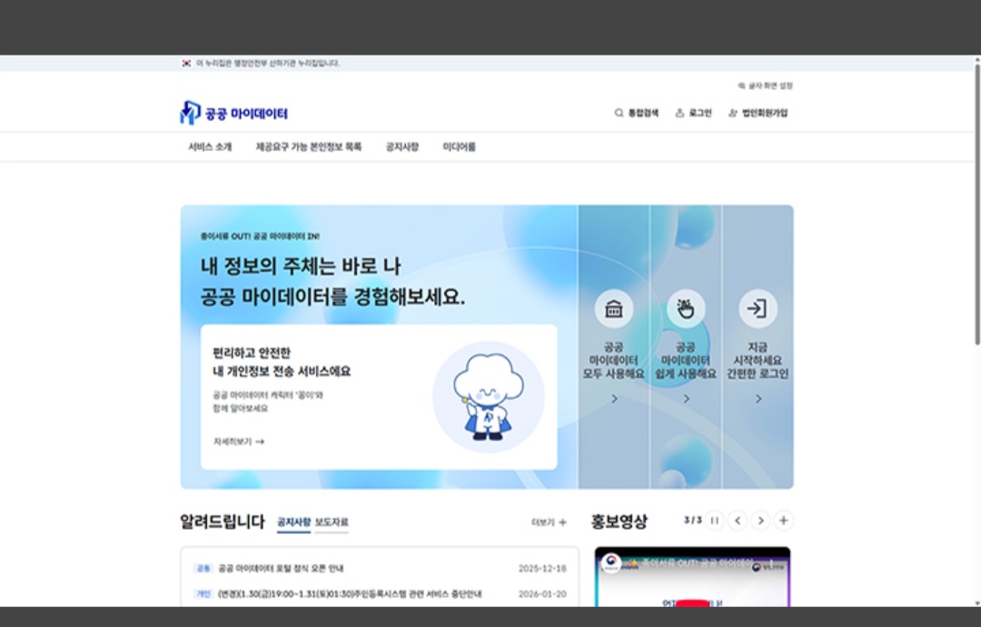 아울러 지난해 12월 기업 공공 마이데이터 전용 누리집(mydata.go.kr)을 개설해 서비스 이용을 지원하고 있다.