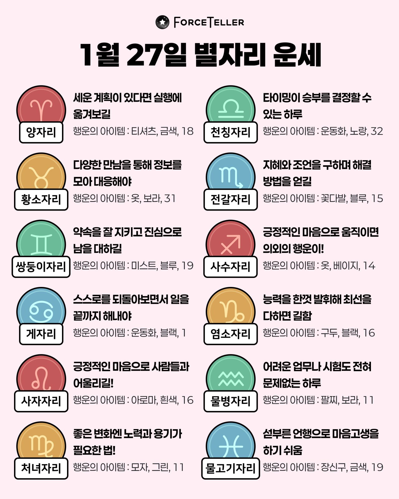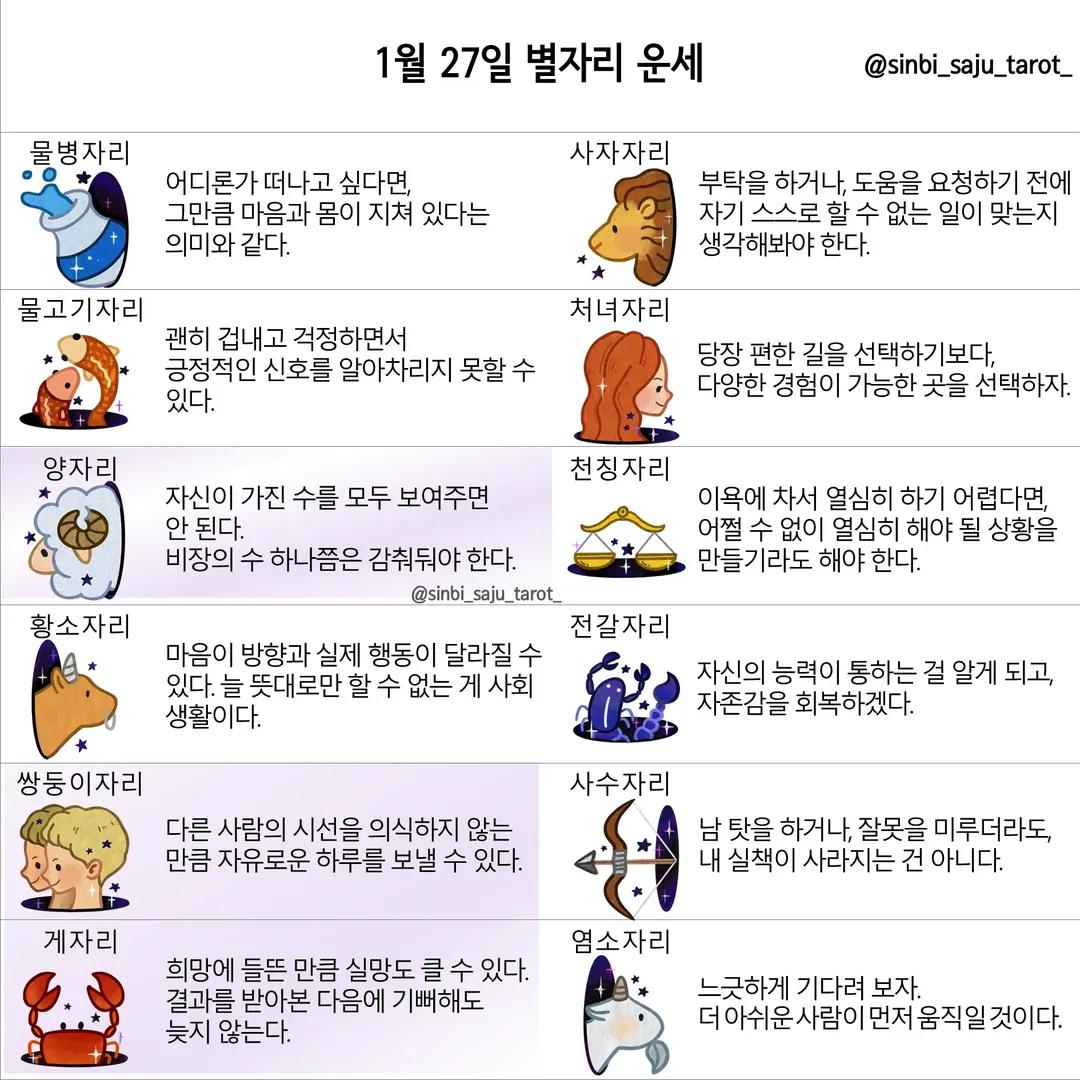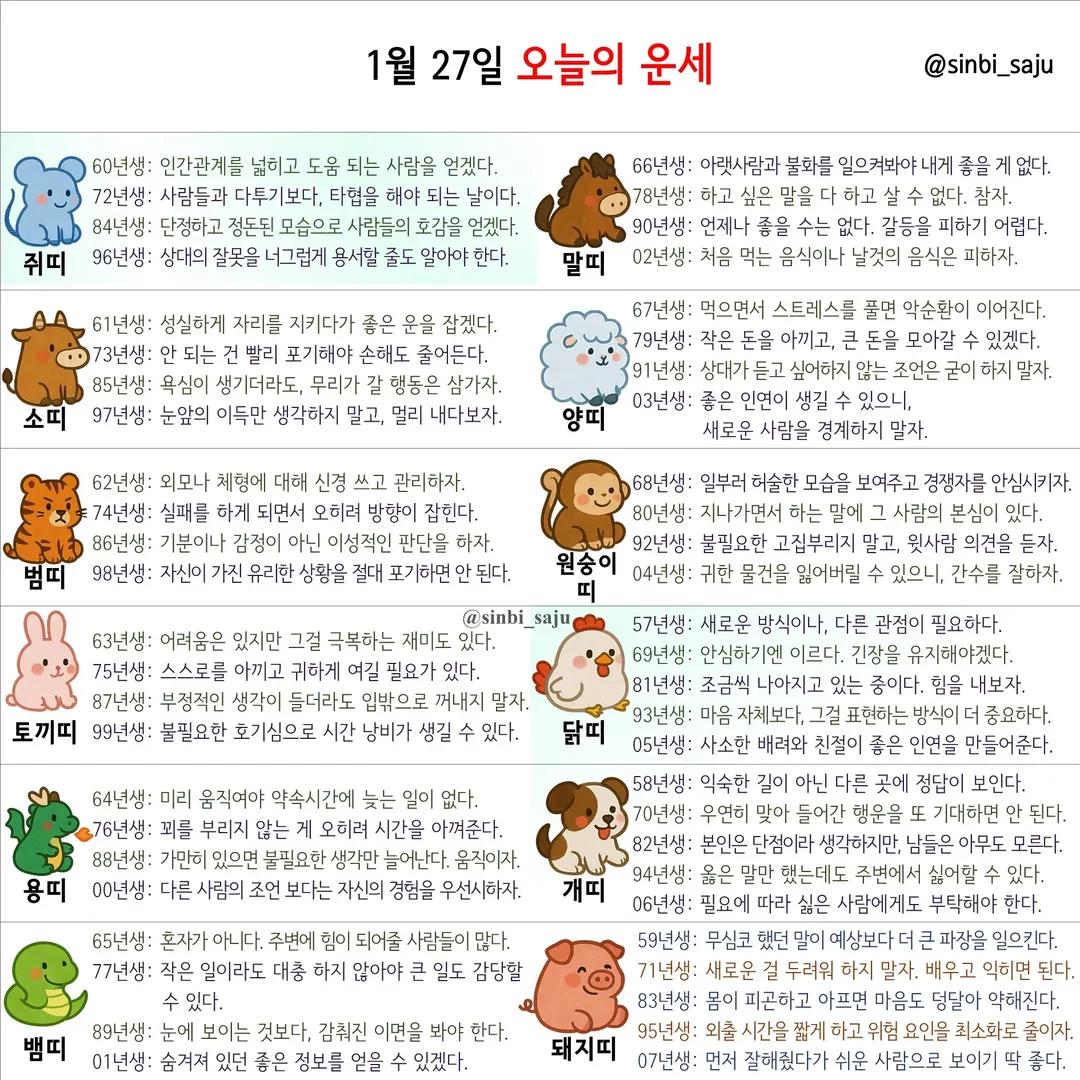 #2026년 병오년(丙午年)1월27일. 더사주.별자리.일일운세.띠별운세