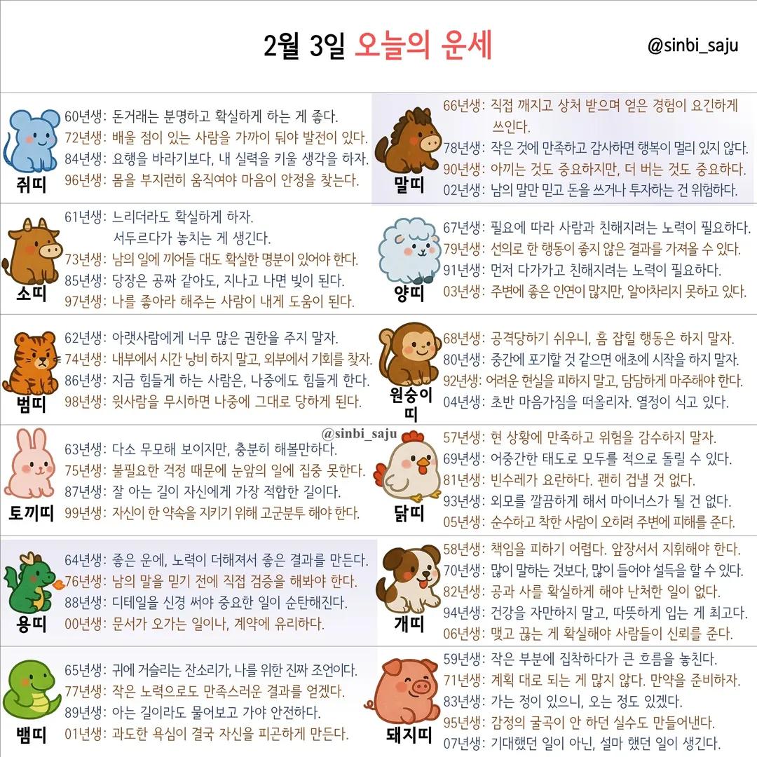 #2026년 병오년(丙午年)2월3일. 더사주.별자리.일일운세.띠별운세